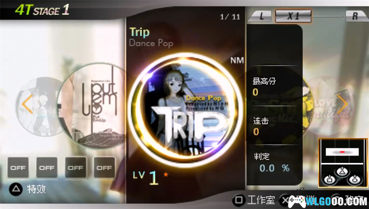 - Remix系统:游戏首次引入3.2T、4.2T、6.2T 模式,通过 PSP 的摇杆左右切换三个独立音轨面板,玩家需在不同面板间快速操作以应对复杂谱面。