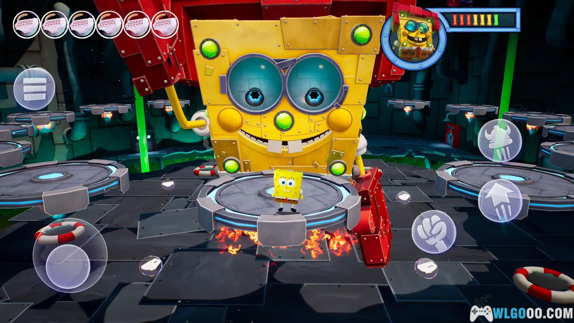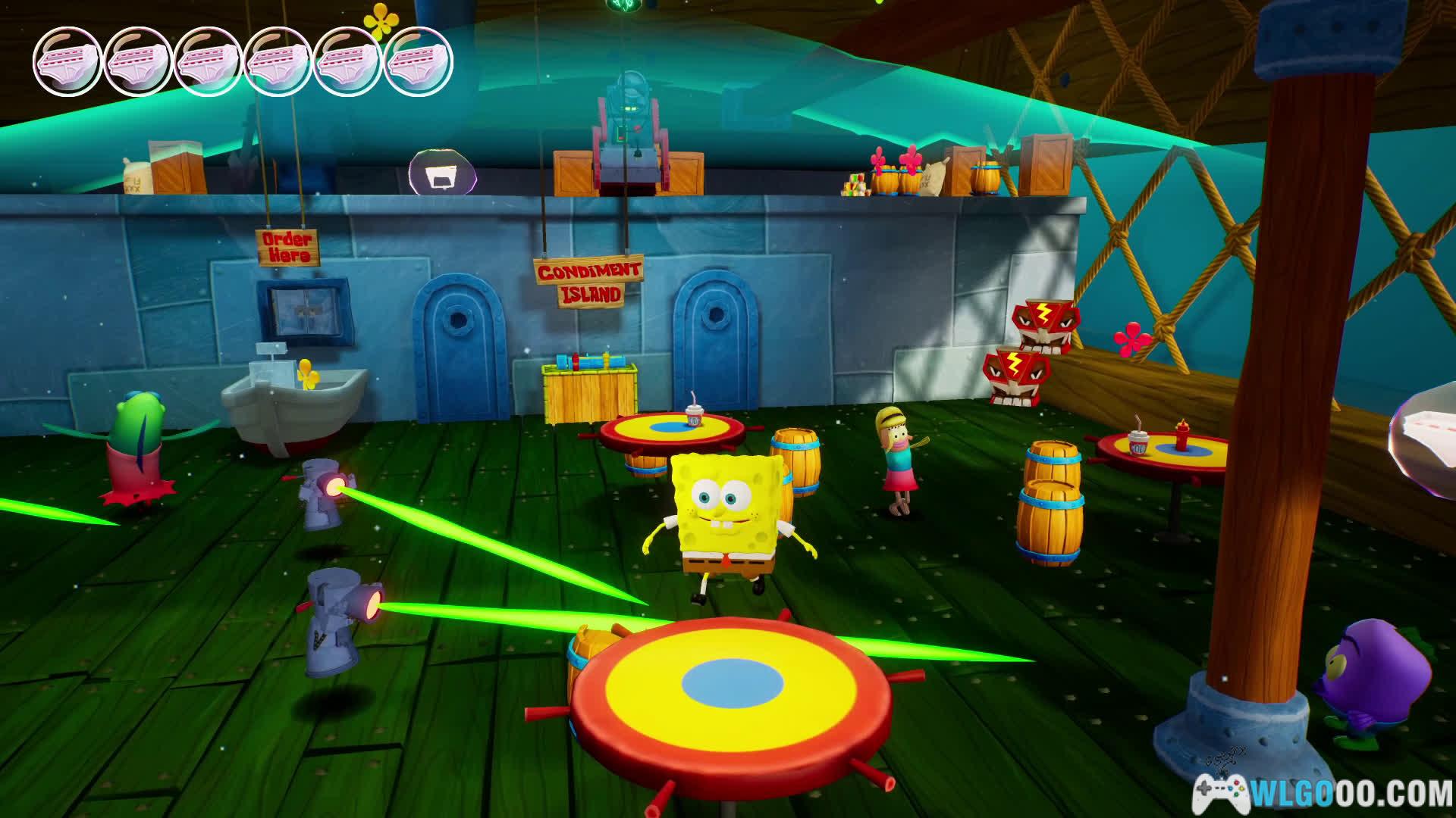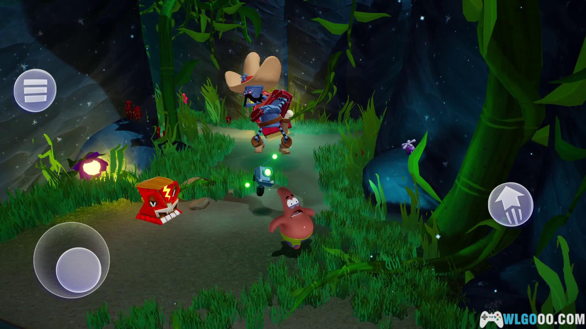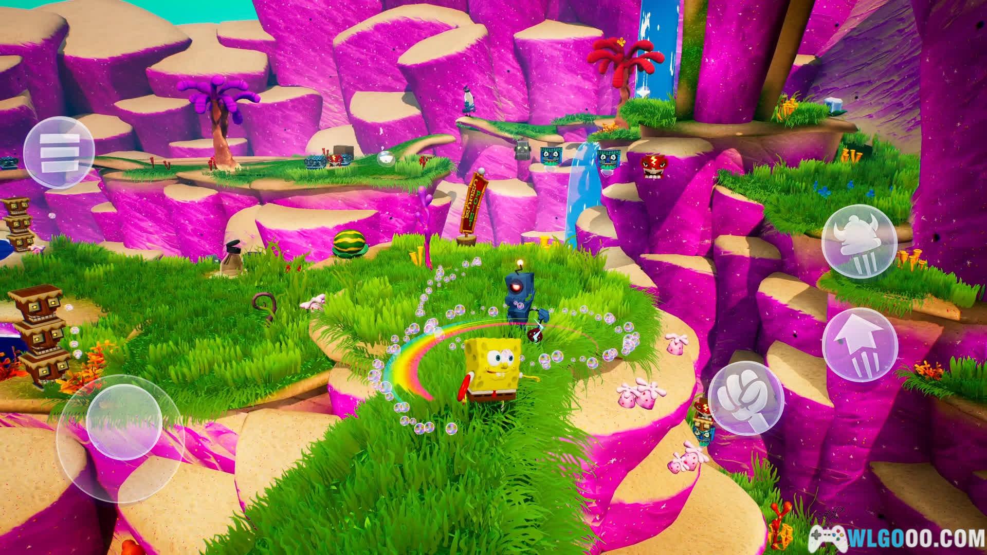 海绵宝宝可使用泡泡攻击、快速滚动和内裤蹦极;派大星能投掷重物(如西瓜)或利用体重压碎障碍;珊迪擅长空手道和绳索滑翔,可二段跳或空中荡绳。不同角色技能在解谜中至关重要,例如珊迪的绳索可跨越沟壑,派大星的投掷能激活机关。