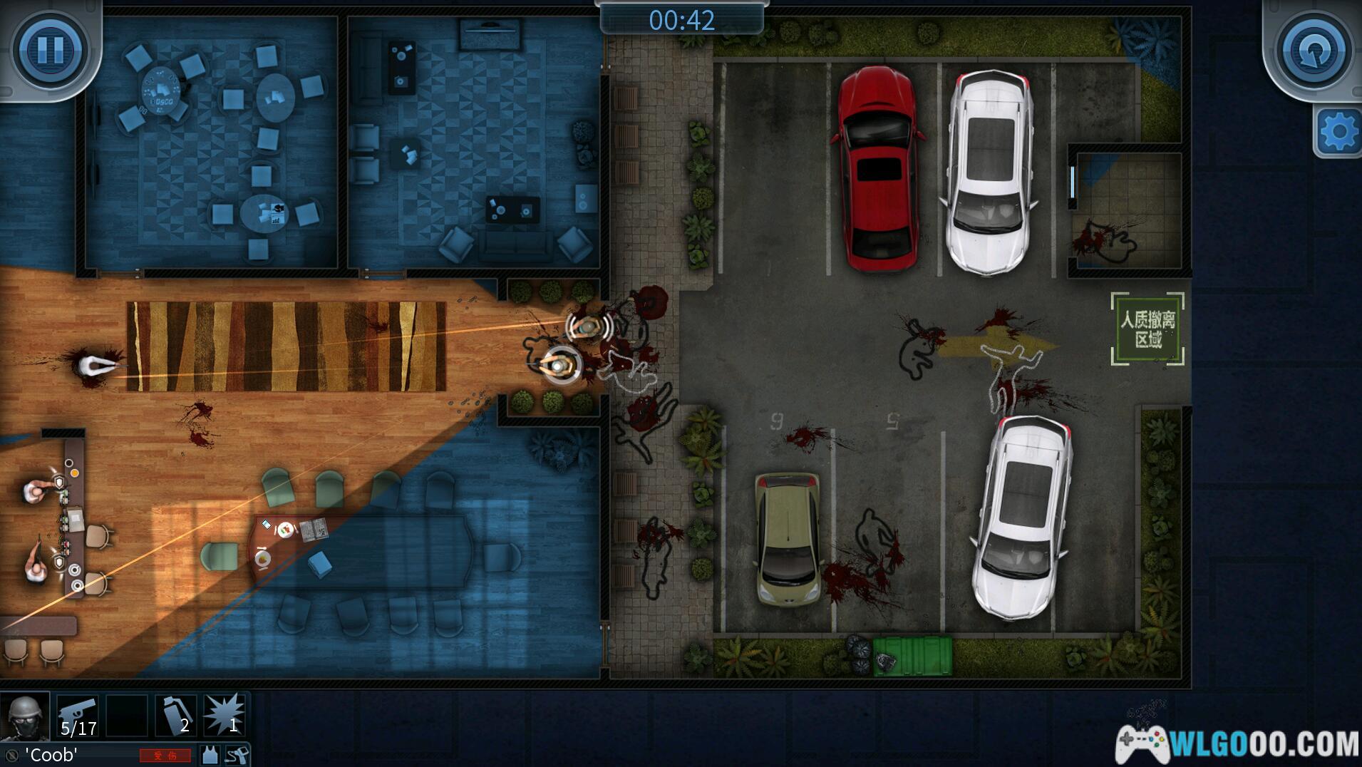 在2D 俯视角下,玩家可清晰观察建筑结构、敌人分布、人质位置及小队动向,如在沙盘上推演战术。
