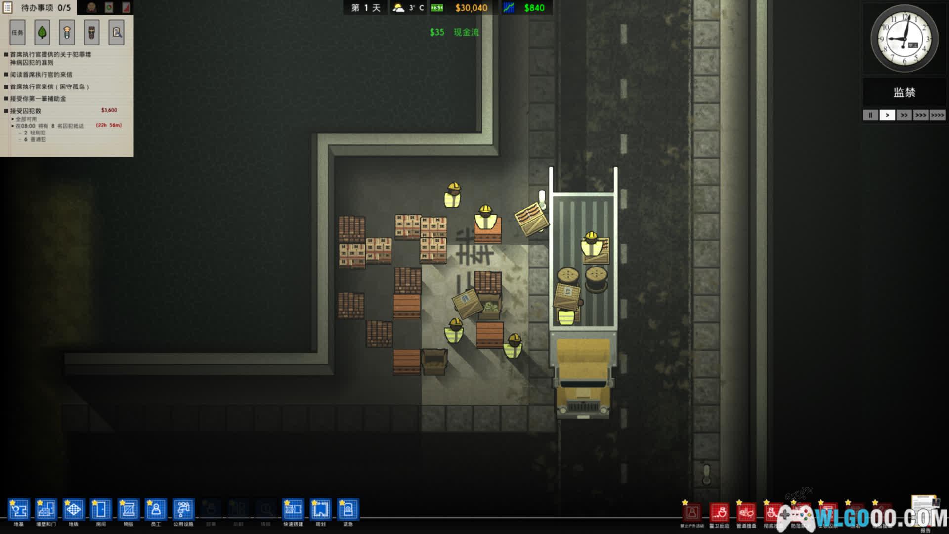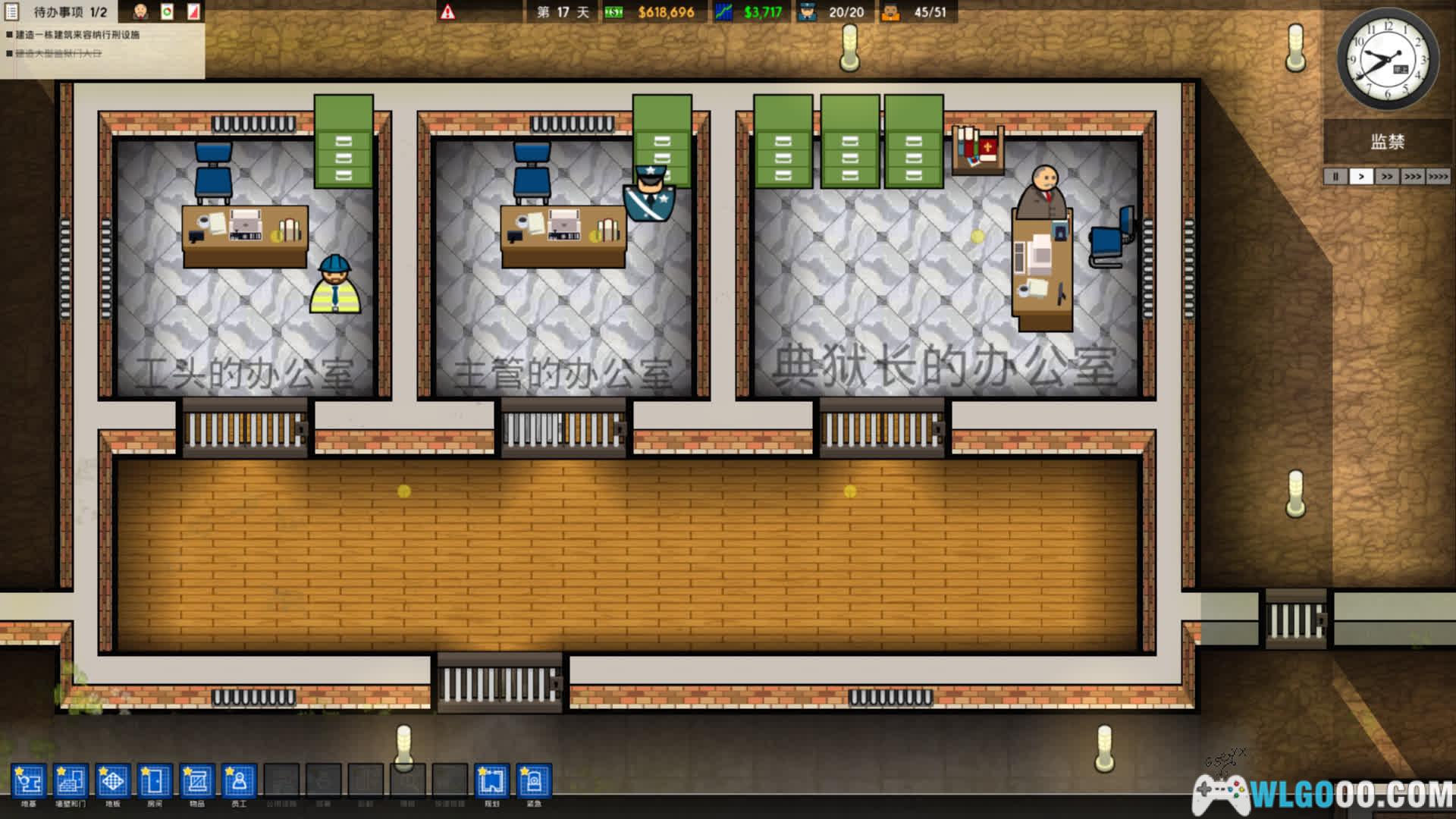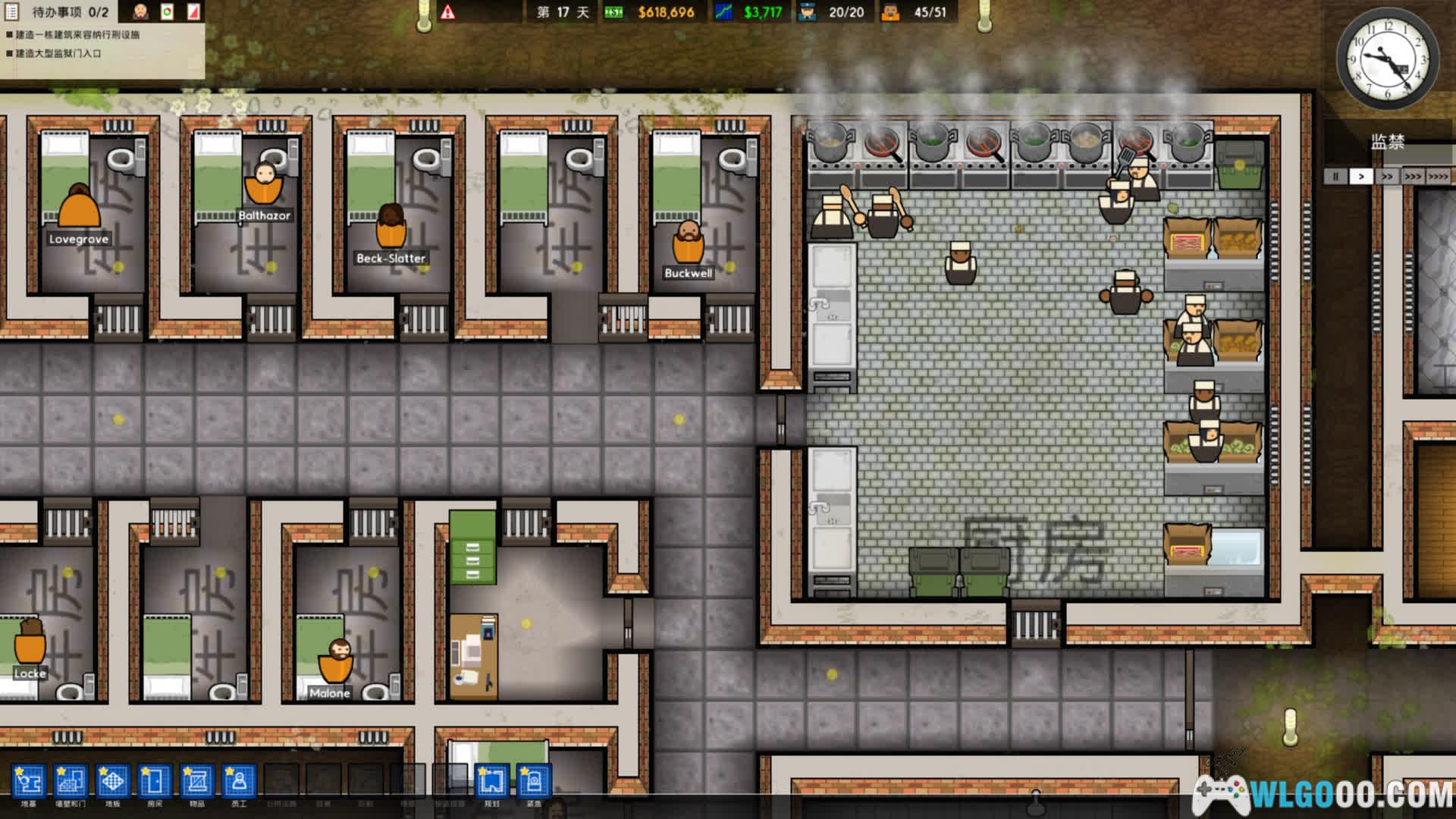 - 人员调度:雇佣警卫、厨师、医生、清洁工等帮助监狱进行运转,员工数量与效率直接影响监狱安全性 —— 不足的警卫可能导致囚犯斗殴失控,低效厨师引发食物中毒事件。