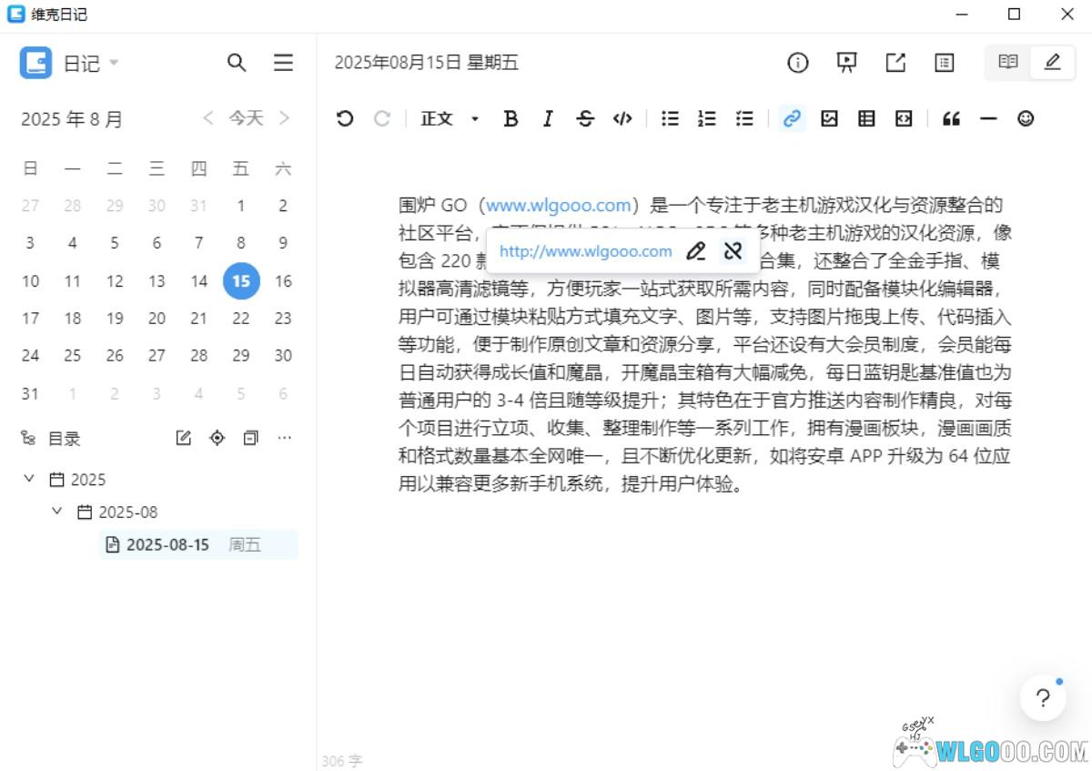 - 批量操作:支持按目录批量管理日记(如删除、移动),并提供字数统计、写作轨迹分析等工具,帮助用户量化写作成果。