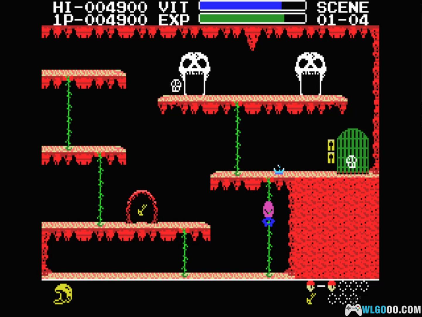 - 难度调整:NES 版以 “一碰即死” 的高难度著称,而 DOS 版引入生命条系统(最多 3 格),允许玩家承受一定伤害。例如被蝙蝠击中会损失半格生命,而非直接毙命,这一改动降低了新手的挫败感。