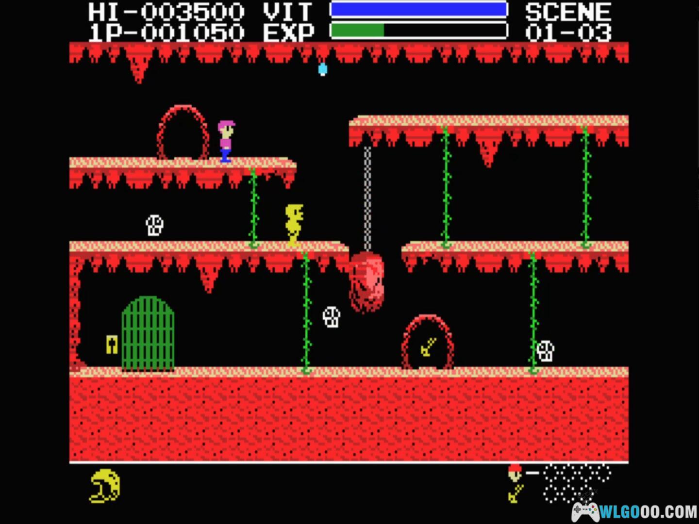 - 角色关卡:MSX 版的主角是电影中的 Sloth(而非 NES 版的 Mikey),玩家需在每关营救 7 名伙伴。DOS 版虽未完全复刻这一设定,但保留了 “多伙伴营救” 的核心机制 —— 例如在熔岩关卡中,玩家需炸开 5 处隐藏牢房才能解锁最终通道。