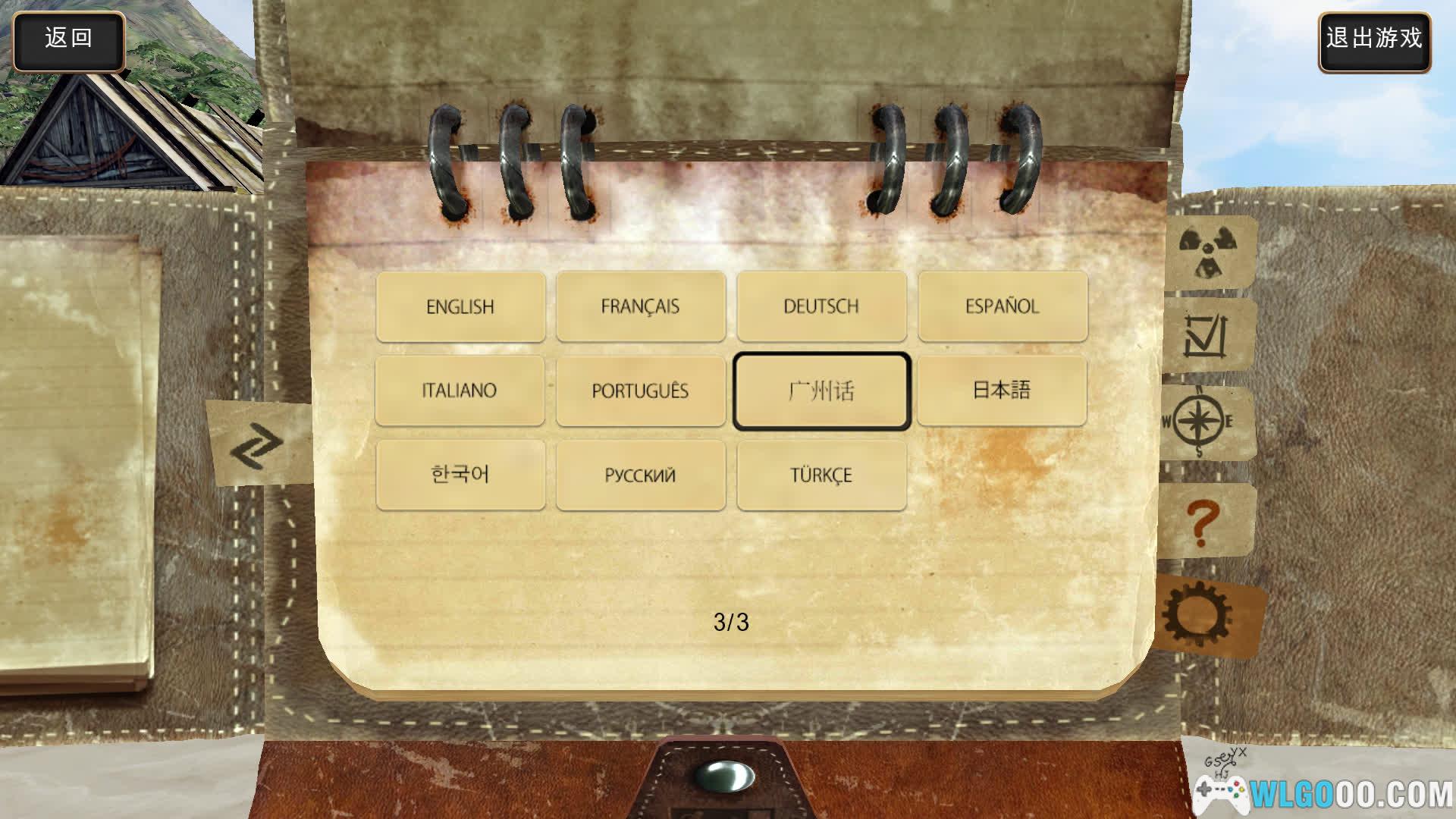 游戏为完整内容解锁版,默认为英文,需要手动设置为中文。点击右上角打开笔记本,然后找到笔记本右下角的齿轮图标,接着翻动笔记本到第三页,选择“广州话”技能修改为中文