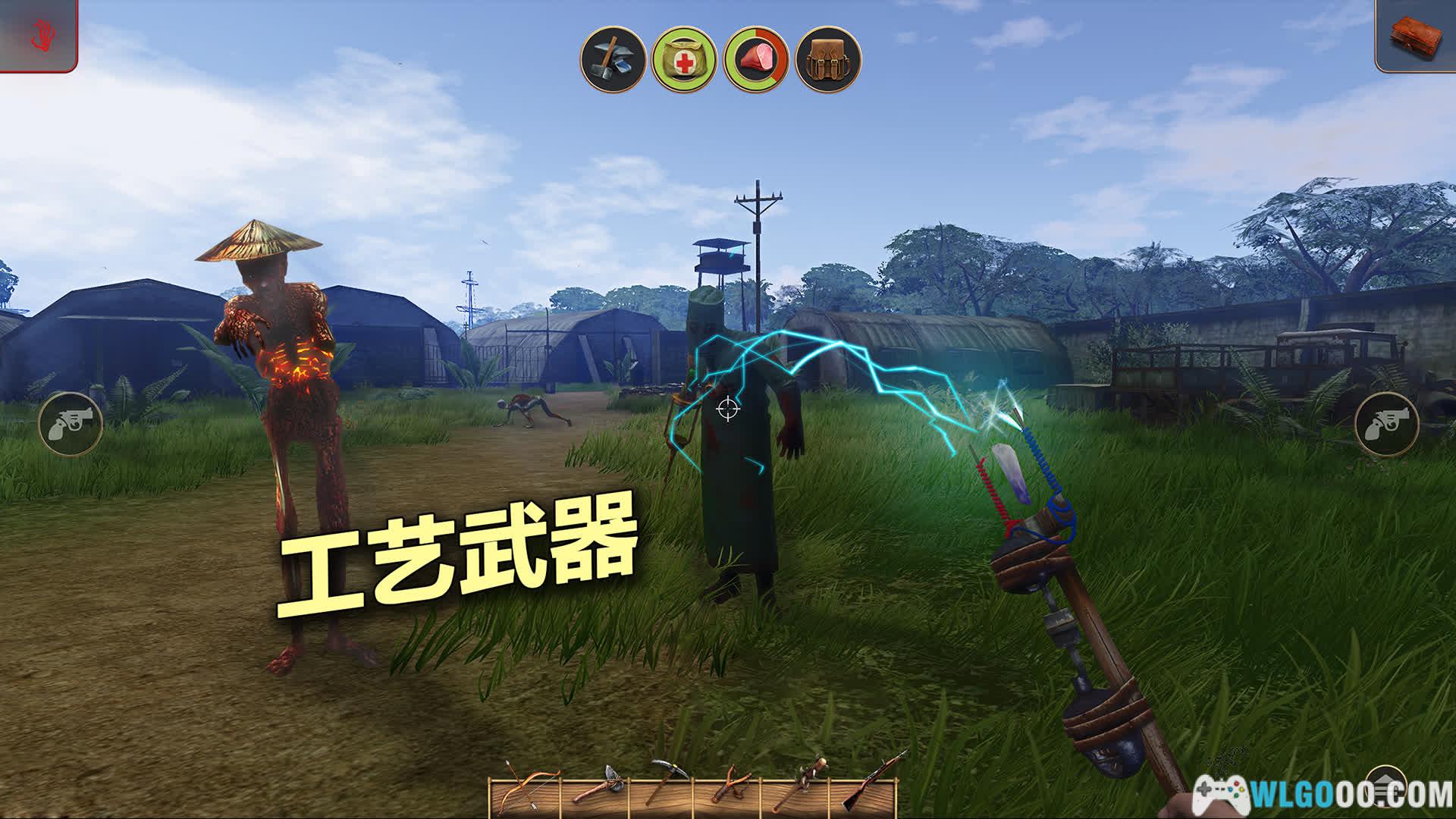 - 敌人类型:包括变异狼、鳄鱼、丧尸化日军,以及后期出现的巨型辐射兽。不同敌人需采用不同策略 —— 例如用弓箭远程消耗熊,或用地雷陷阱对付僵尸群。