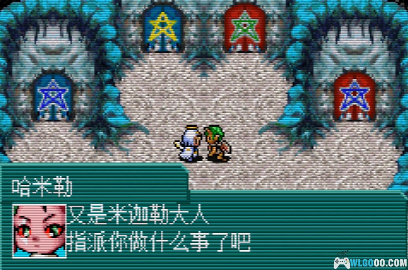 进入恶魔祠堂后不久,看到有可爱的魔物被欺负,主角立刻上前援救。之后向东南方向走,将石像推入对应颜色的魔法阵,就会出现宝箱,里面装着恶魔钥匙。接着向北开门,之后还是需要推石像,此时左右上方的门会打开,左右两侧有宝箱,向上走能见到魔界之门,进入时间之门。