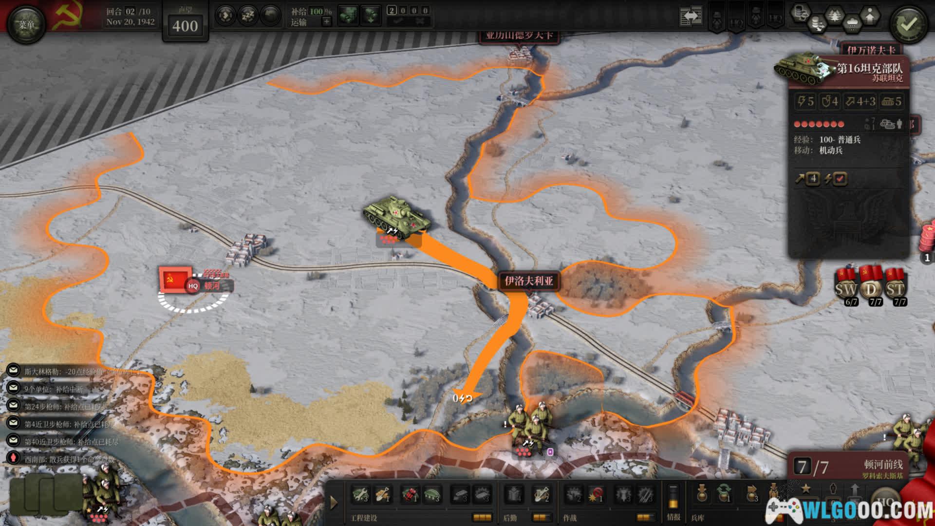 - 补给管理:单位需依赖铁路或补给卡车维持补给,脱离补给超过三回合将逐步丧失战斗力甚至崩溃,模拟二战后勤的脆弱性。