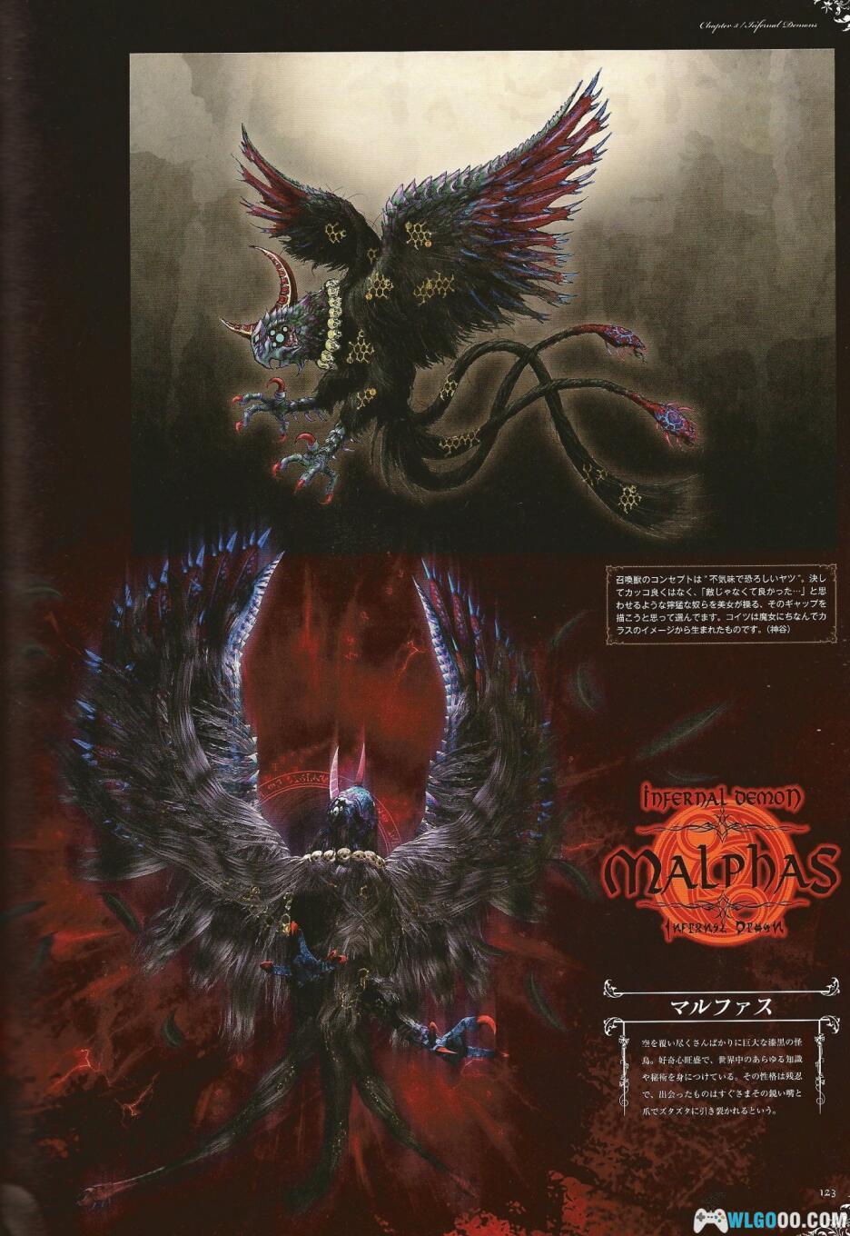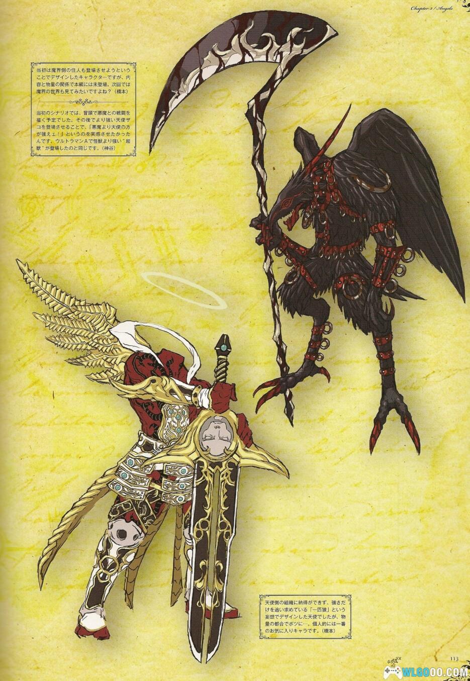 - 天使与恶魔:艺术集收录了天堂与地狱生物的设定图,以金黄和暗黑不同的视觉版面去展示两者的设计偏向