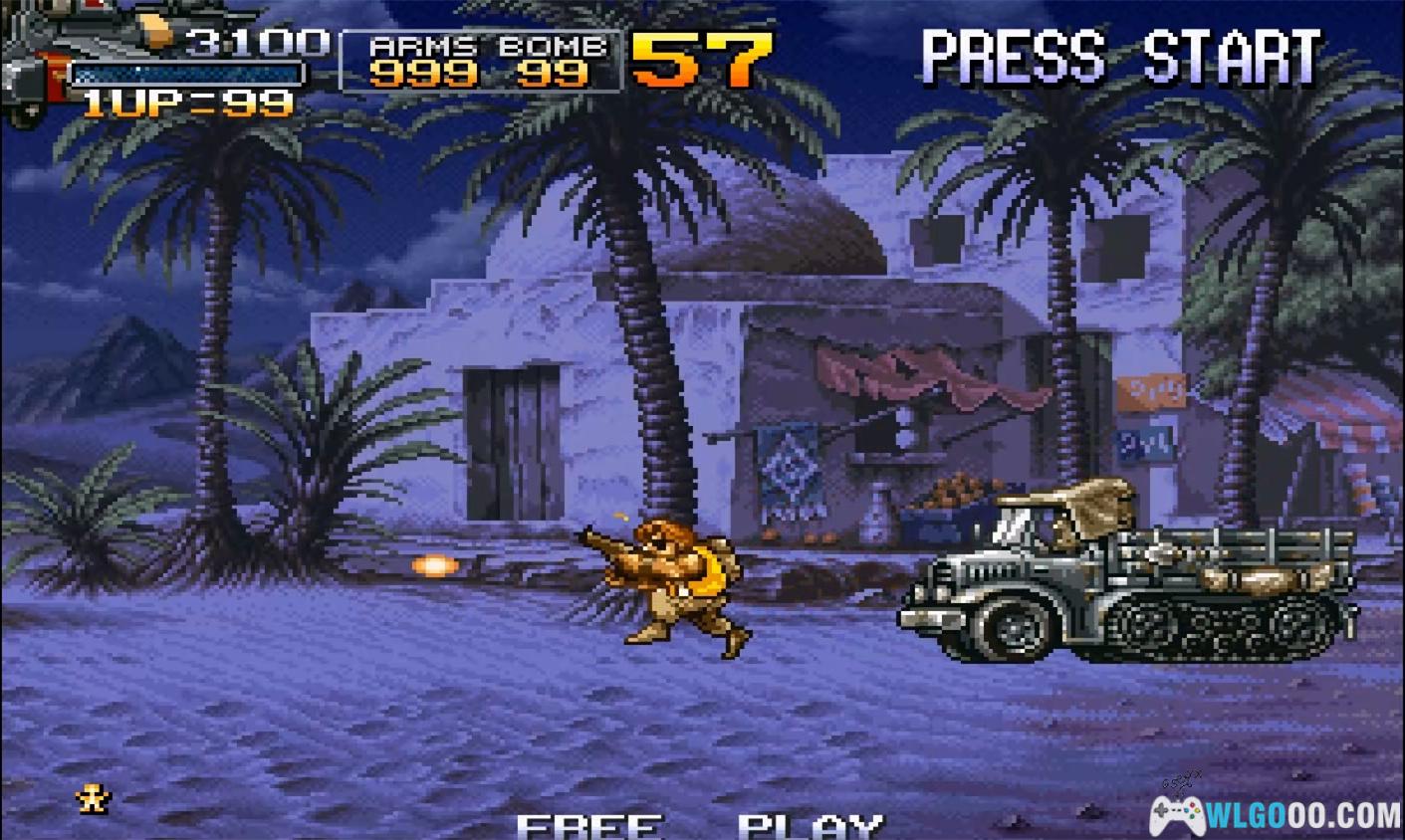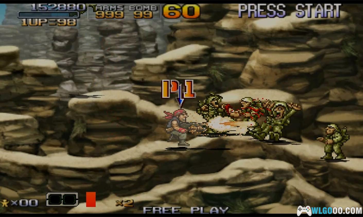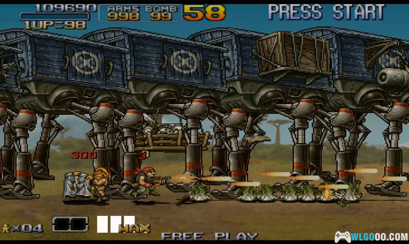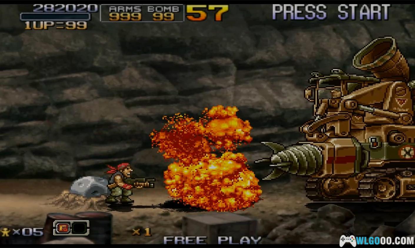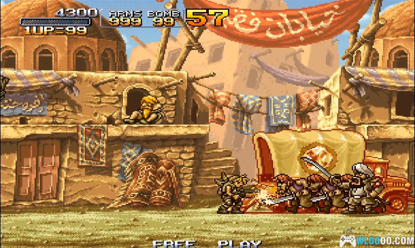 游戏是街机时代横版射击游戏的巅峰之作,以密集的敌人、夸张的载具和幽默的角色设计著称,玩家需灵活运用武器和载具突破关卡。