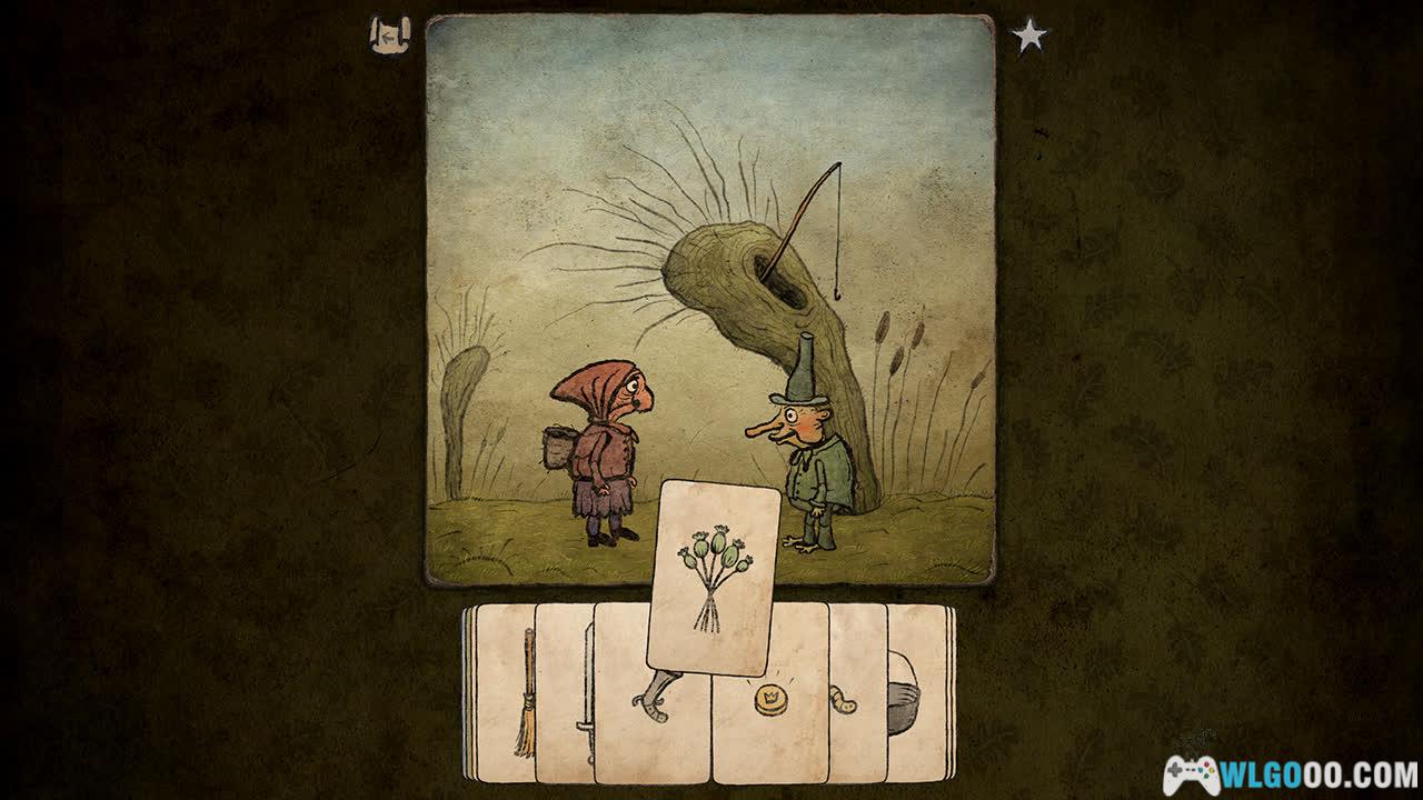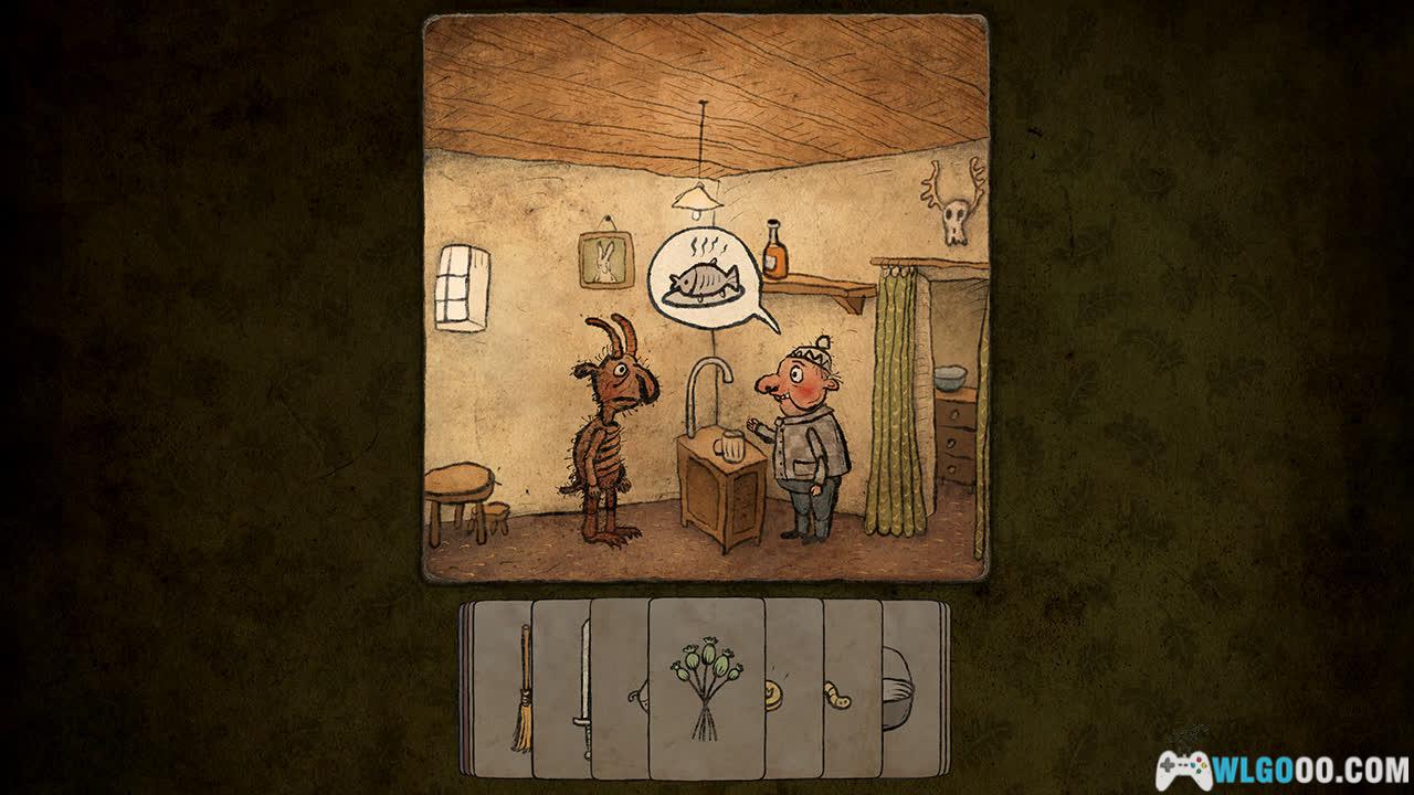 - 卡牌互动:这是游戏最核心的机制。你通过收集卡片(物品)来与世界互动。没有固定的解谜线路,同一个问题往往有多种解决方案。你可以用一块肉引诱狗,也可以用骨头,甚至可以用其他更奇怪的方法。这种高自由度让探索过程充满了惊喜和乐趣。