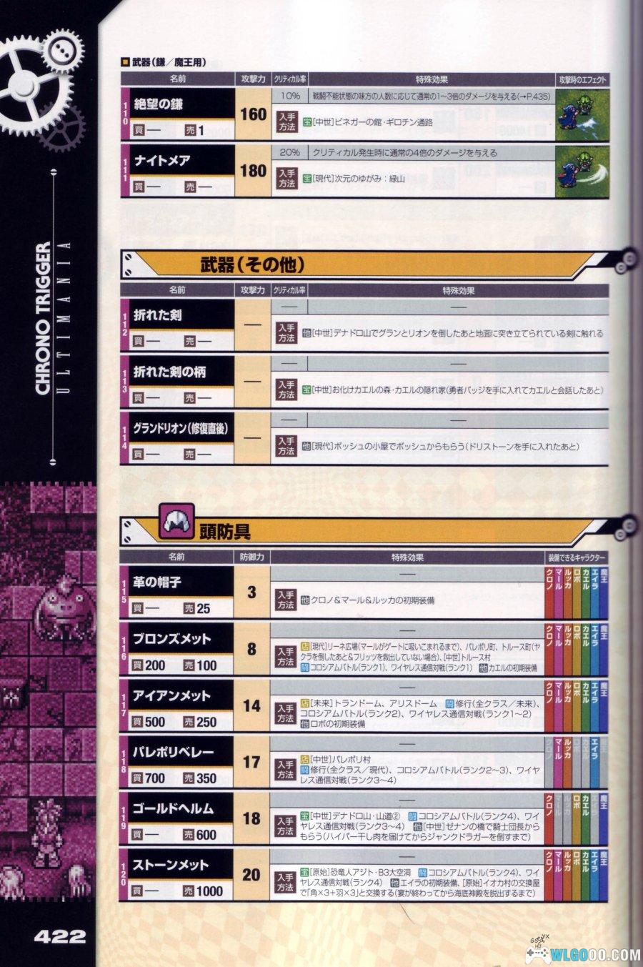 - 深度攻略:提供主线流程、隐藏迷宫、角色养成及组合技的详尽指南。战斗系统部分细化了敌人属性、弱点及战术策略。数据表格覆盖武器、道具、魔法的参数,因为出品在2009年,包含 NDS 重制版新增内容的攻略。