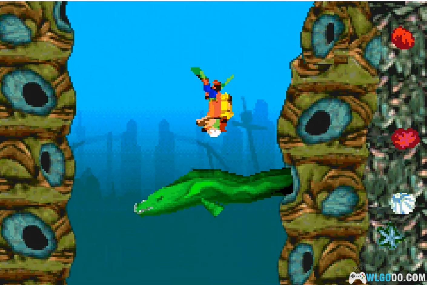 | 巨型鳗鱼 | 5 | 绿色,从洞中冲出咬你。如果时机把握正确,你可以游过它们,但更简单的方法是勇敢地通过旋转消灭它们。 | 水下遗迹 |