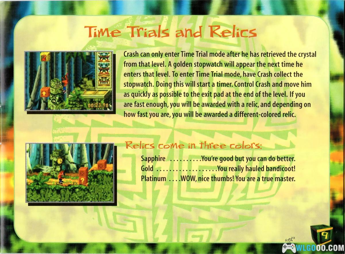 前进并破坏普通箱和神秘箱。利用弹跳箱,旋转消灭紫色蜥蜴,跑上小山收集瓦姆巴水果。破坏堆叠在一起的两个箱子(旋转是最简单的方法),再次杀死紫色蜥蜴。