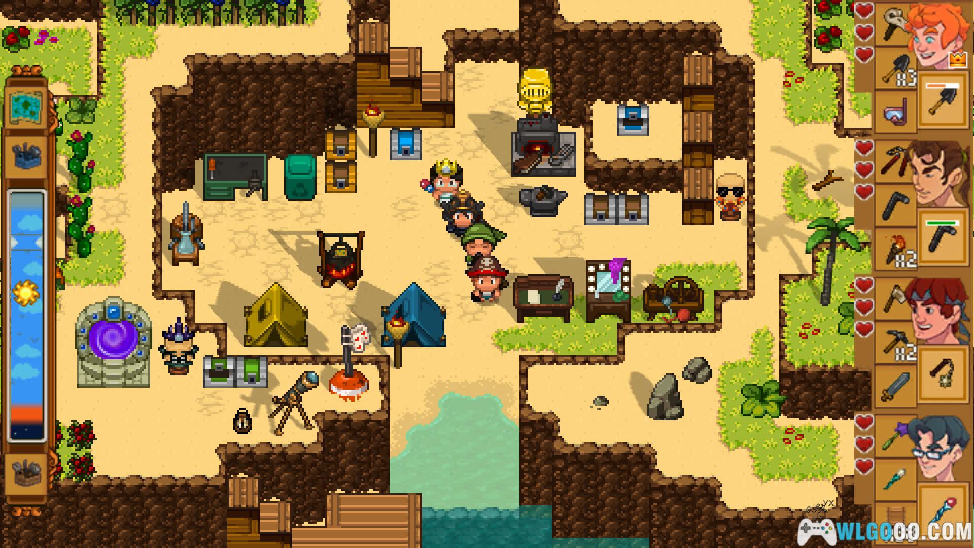 - 环境交互:昼夜循环与天气系统影响探索策略,雨天 NPC 会躲雨,夜晚怪物强度提升。玩家可挖掘隧道、开凿运河甚至炸平山脉,改变地形以开辟新路径。