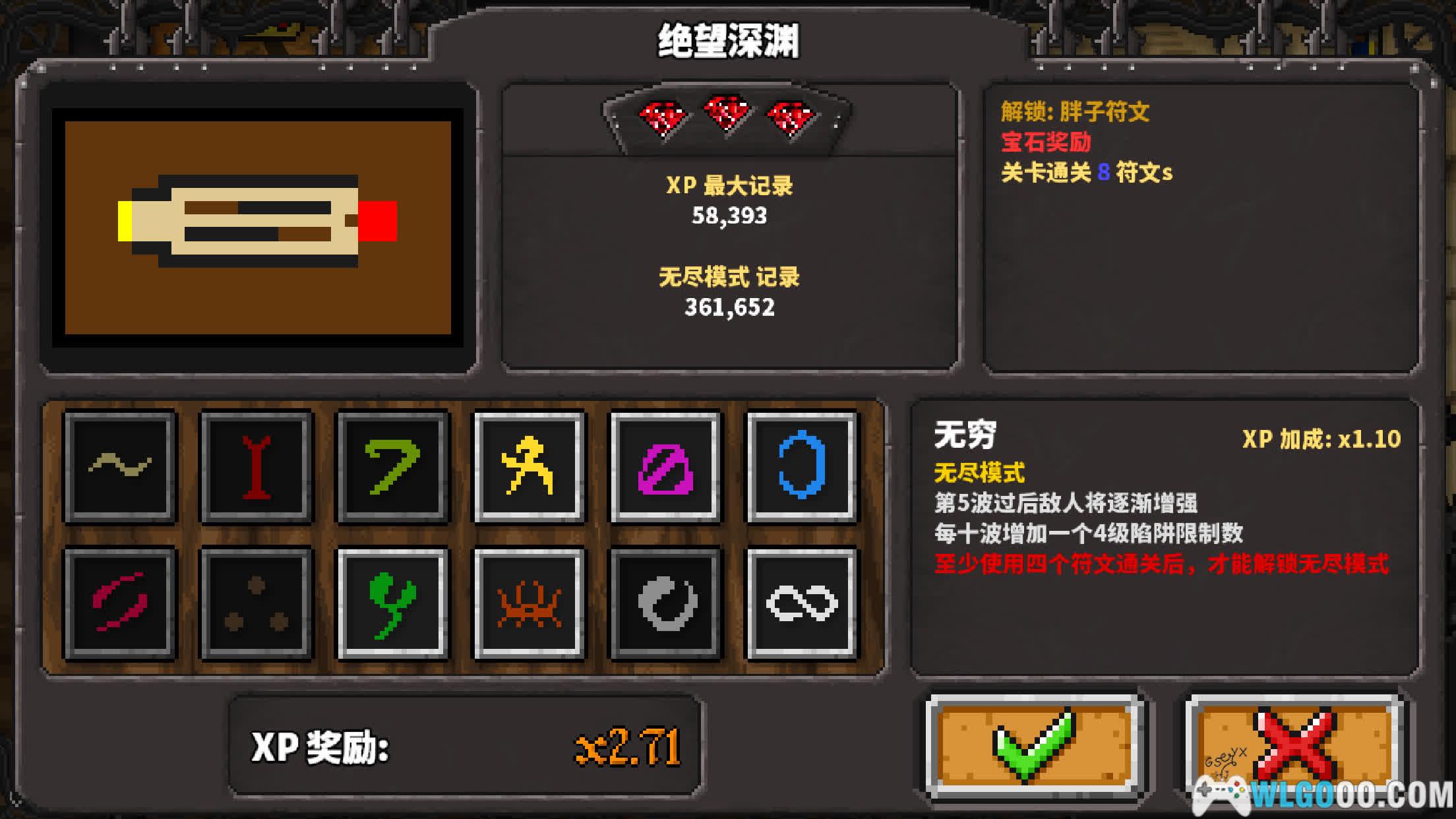 - 符文系统:游戏开始前,你可以通过组合不同的符文来调整关卡难度,例如让敌人获得5%生命回复或挑战一命通关模式等。