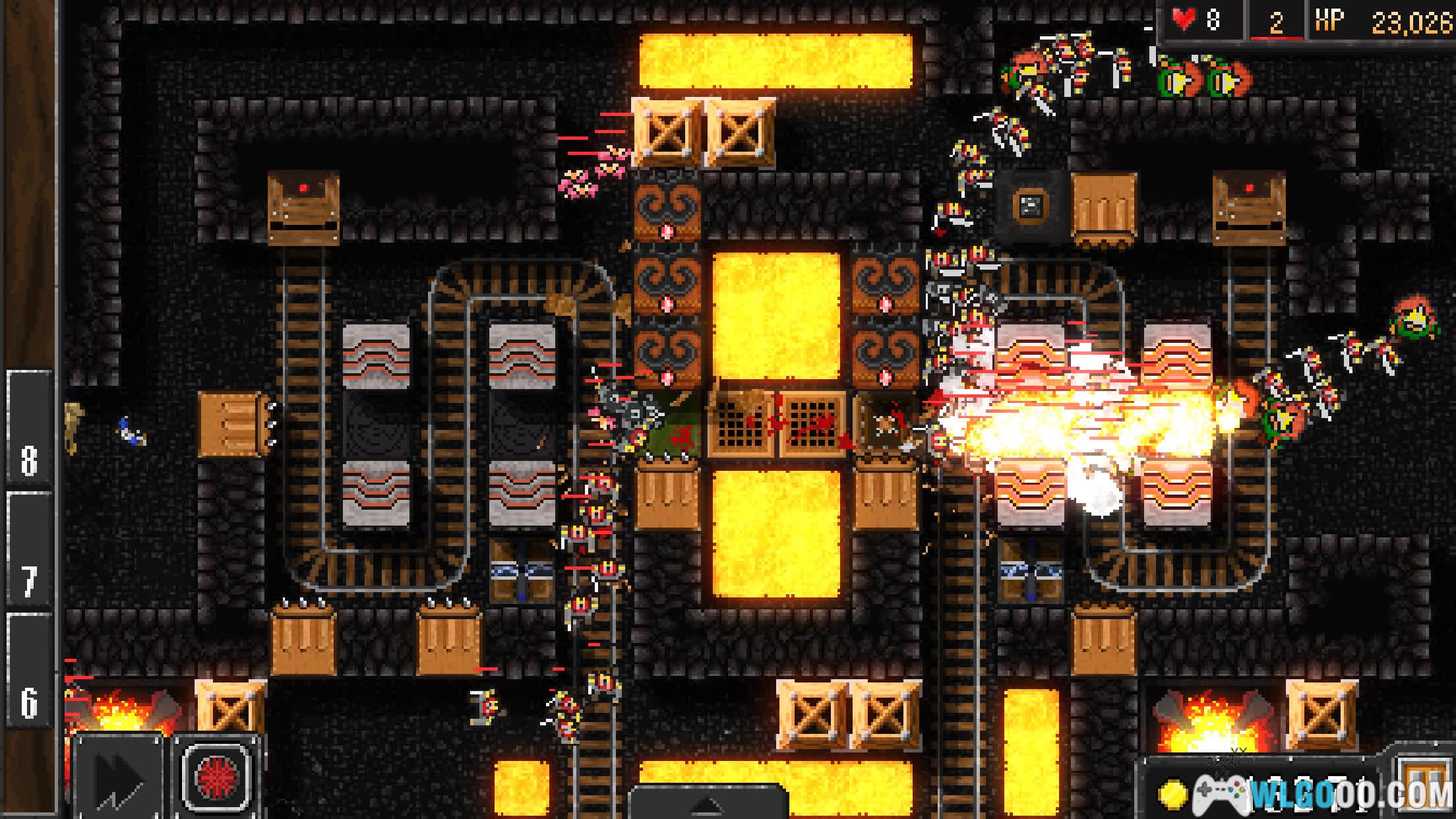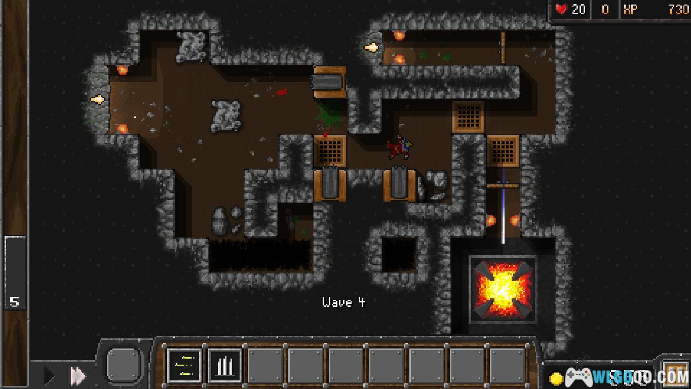- 陷阱设计:游戏中的陷阱并非传统半径的攻击范围。箭台可以自主选择攻击方向,地刺则只能对单格造成伤害。更吸引人的是丰富的物理元素完成地形杀,还可以改变敌人的行进路线,将他们引向你布设的致命陷阱群中,堪称游戏的一大乐趣。
