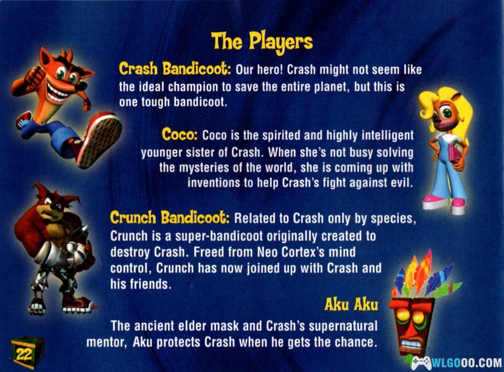 - 角色切换:在某些特定关卡中,玩家可以操作古惑狼的妹妹 Coco和其他角色,他们具备一些独特的能力。