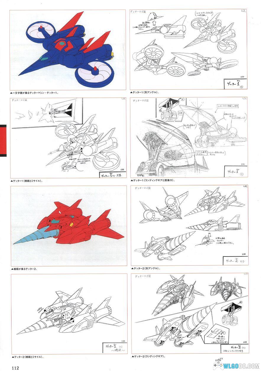 - 机械设定:不同版本盖塔机型的线稿 + 细节标注,如 1974 年版盖塔 1 的 “头部天线功能”“合体关节结构”、OVA 版 “真盖塔” 的 “盖塔射线喷射口设计”,部分图纸来自东映动画的原始档案。