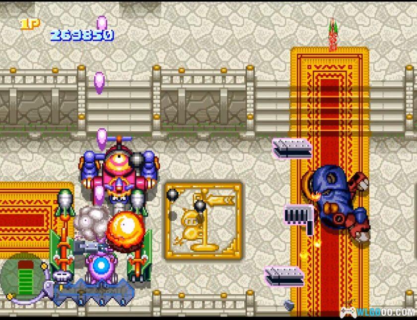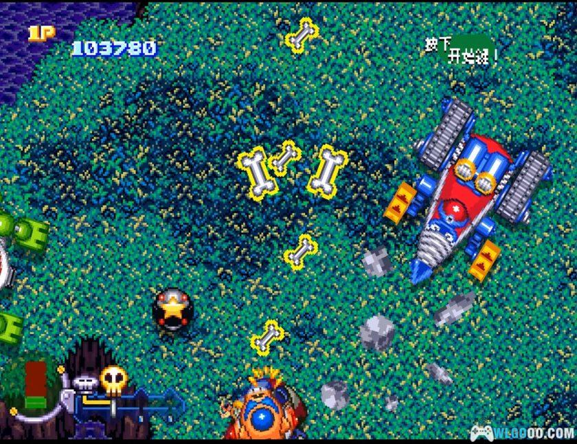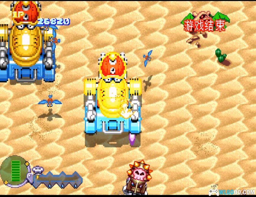 纵版射击游戏,作为《时间飞船》系列的衍生作品,游戏延续了《时间飞船》动画的无厘头风格。反派杜伦布三人组为争夺传说中的「骷髅石」,驾驶机甲穿越历史时空与正派角色展开战斗。