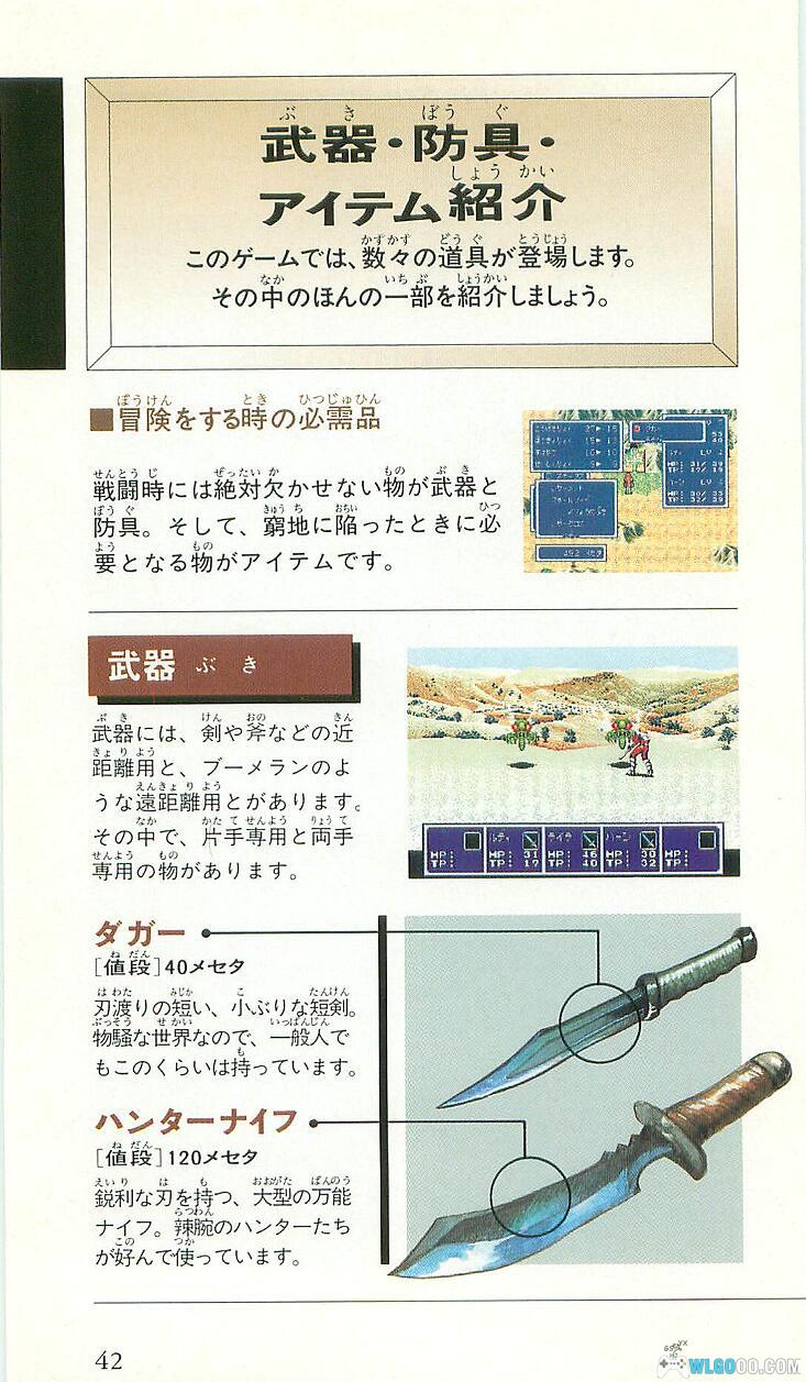 3.收录随日版游戏卡盒发行的说明手册,提供会员收藏。里面不仅有游戏说明,还有角色,装备的图鉴介绍。