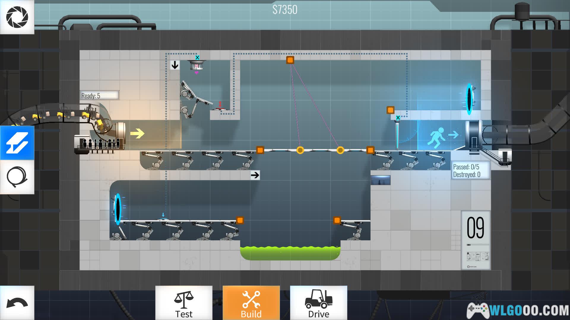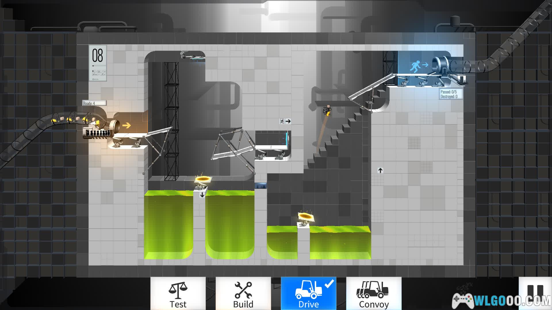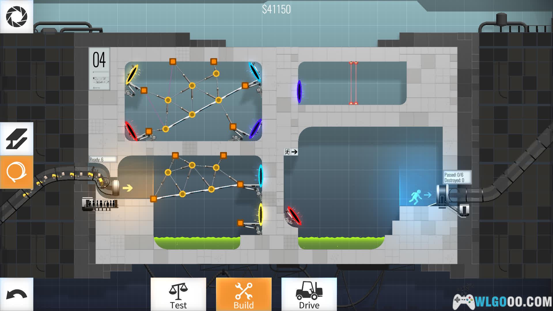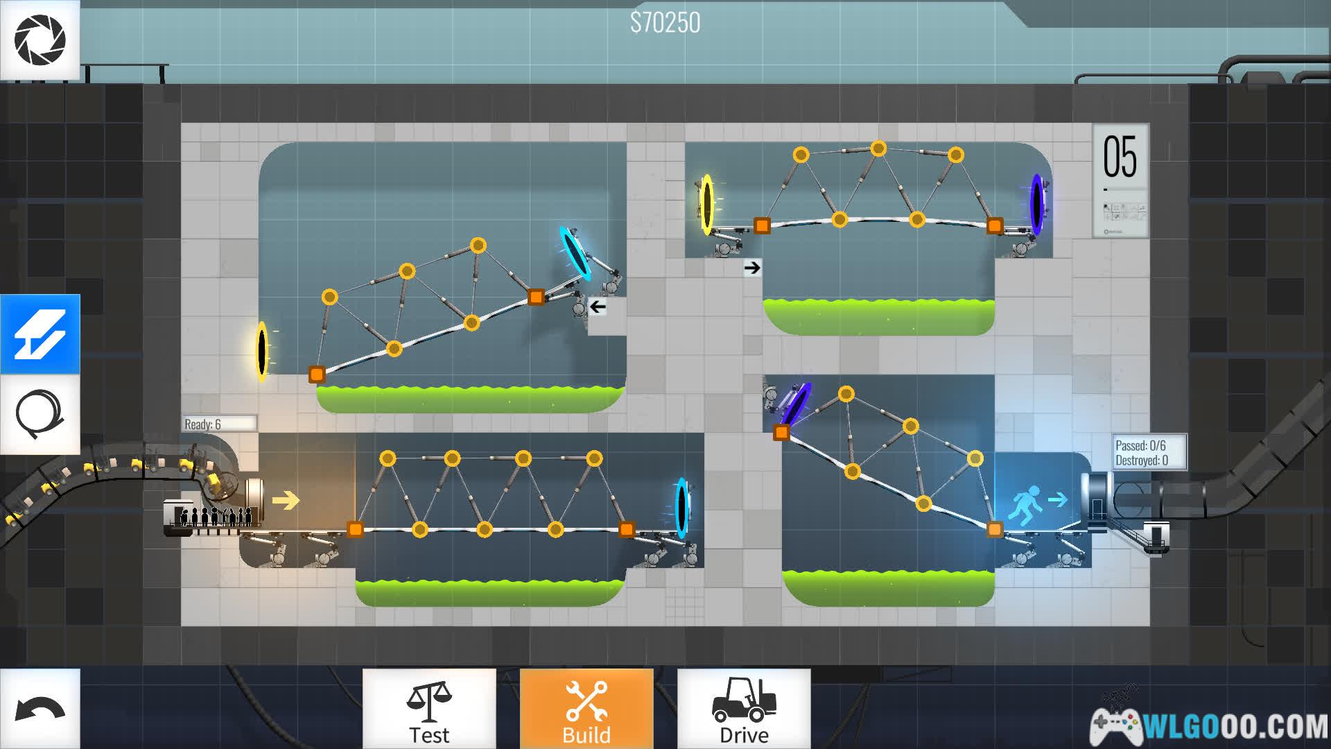 游戏将《传送门》系列的空间跳跃机制与《桥梁建造师》的工程模拟深度结合,玩家需在光圈科技实验室中设计桥梁,利用传送门、凝胶、炮塔等元素,引导车辆安全通过充满机关的测试室。