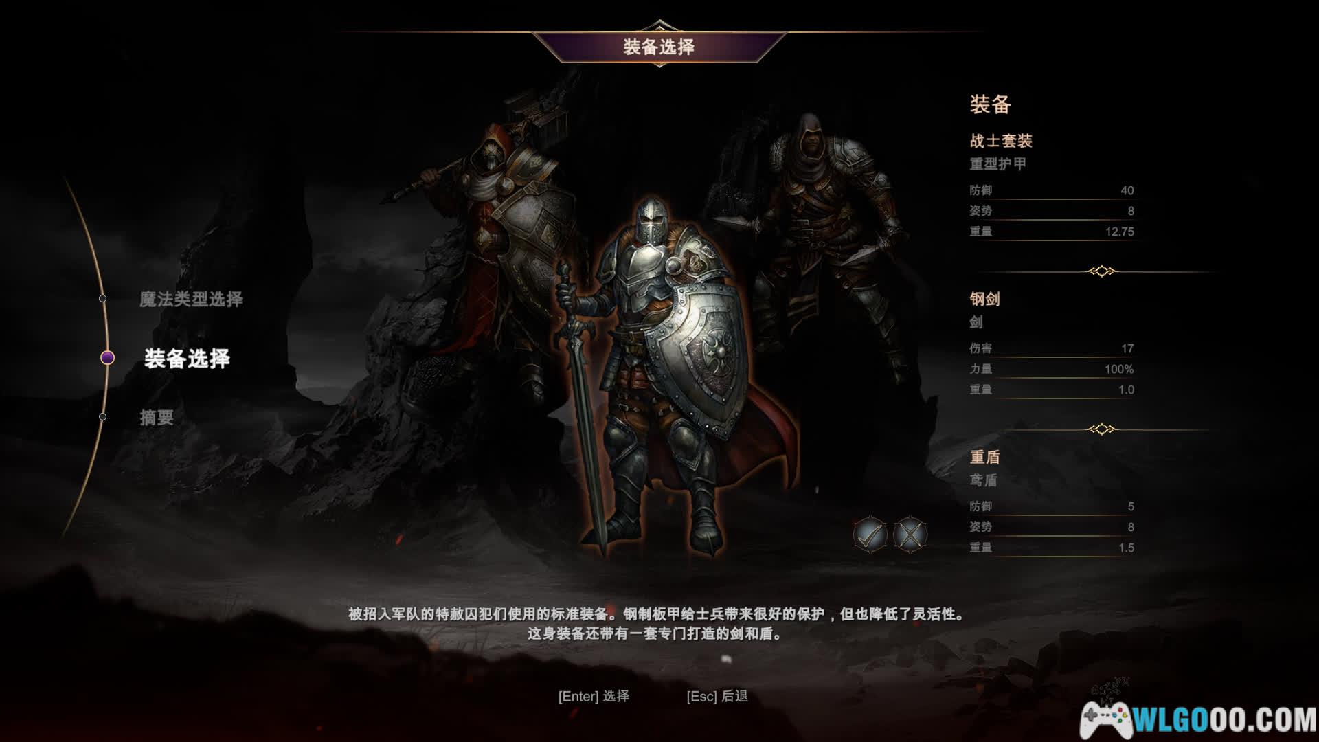 - 角色成长:玩家通过战斗获取经验值,升级后可分配属性点,并解锁技能树分支。游戏提供 9 种初始职业,由三种护甲类型与三种魔法树组合而成。职业选择并非固定,玩家可通过更换装备和魔法自由调整玩法。