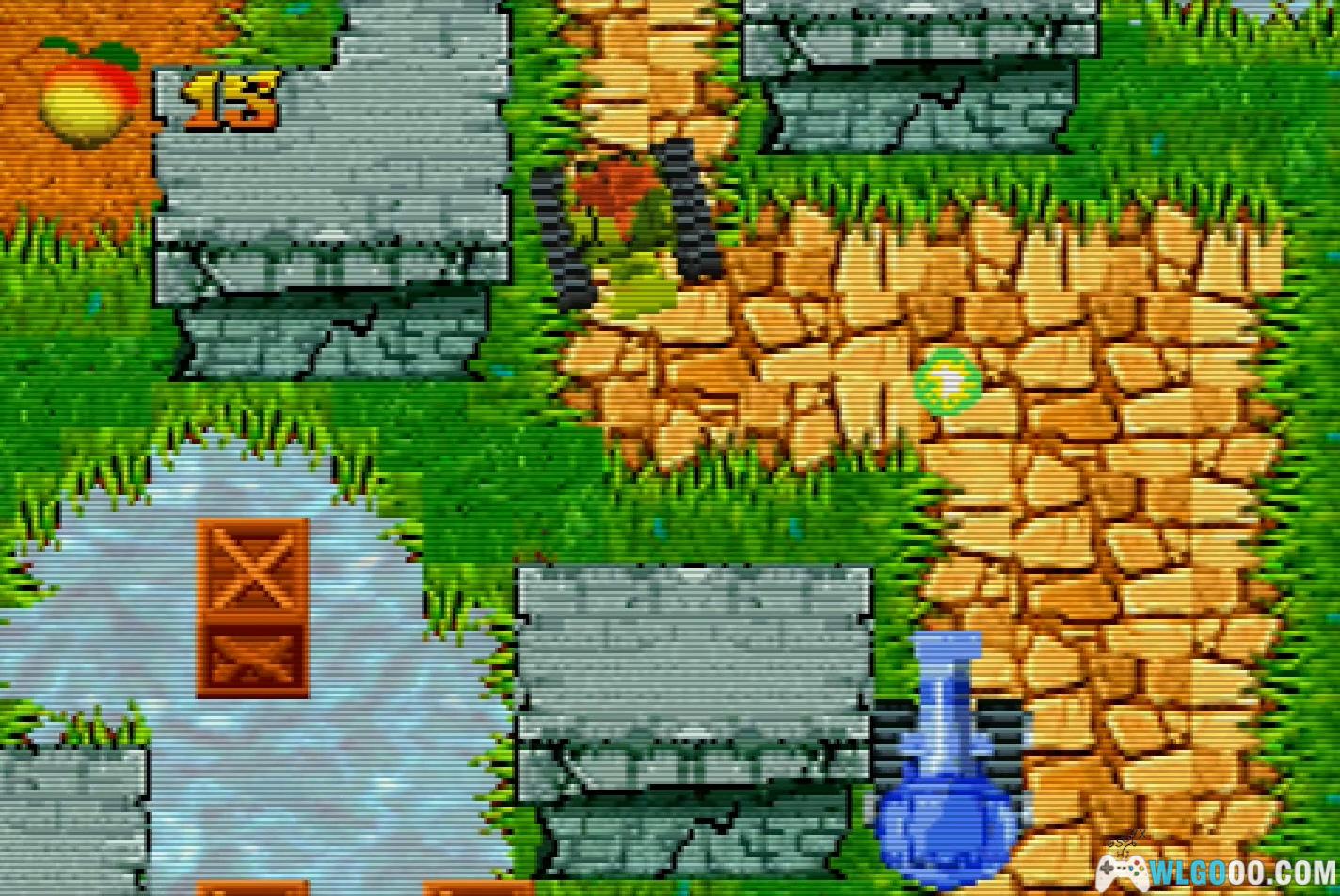瓦姆果实:相当于马里奥的金币,你能猜到收集100个会发生什么吗?好吧,其实什么也不会发生。《古惑狼:紫色》摒弃了古老的"生命"概念。这次你有无限的生命,但如果你"死"了,你会失去自上一次玩迷你游戏或进入钱袋的商店以来收集的所有瓦姆果实。另外,务必跟着瓦姆果实走!通常它们会引向秘密路径。在迷你游戏中,它们通常会指出正确的路线。