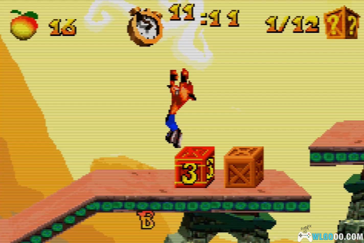 掉下来后,跳过硝基箱子,然后再跳一次拿另一个箱子(此时应该有14个了)。跳上悬挂的平台拿另一个箱子,然后再跳一次。