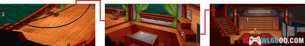 - 2.到船舱中层,按下矮柜三次,分别拿取弹珠、银票、碎银。