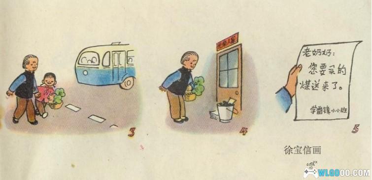 《千万个雷锋在成长》老奶奶上公交车,售票员阿姨忙搀扶,车上军人叔叔让座位,老奶奶下车后有小学生搀扶过马路。当老奶奶终于到家了,门口放着一桶煤,留下的纸条上写“您要买的煤我们给您送过来了”署名是雷锋小小班