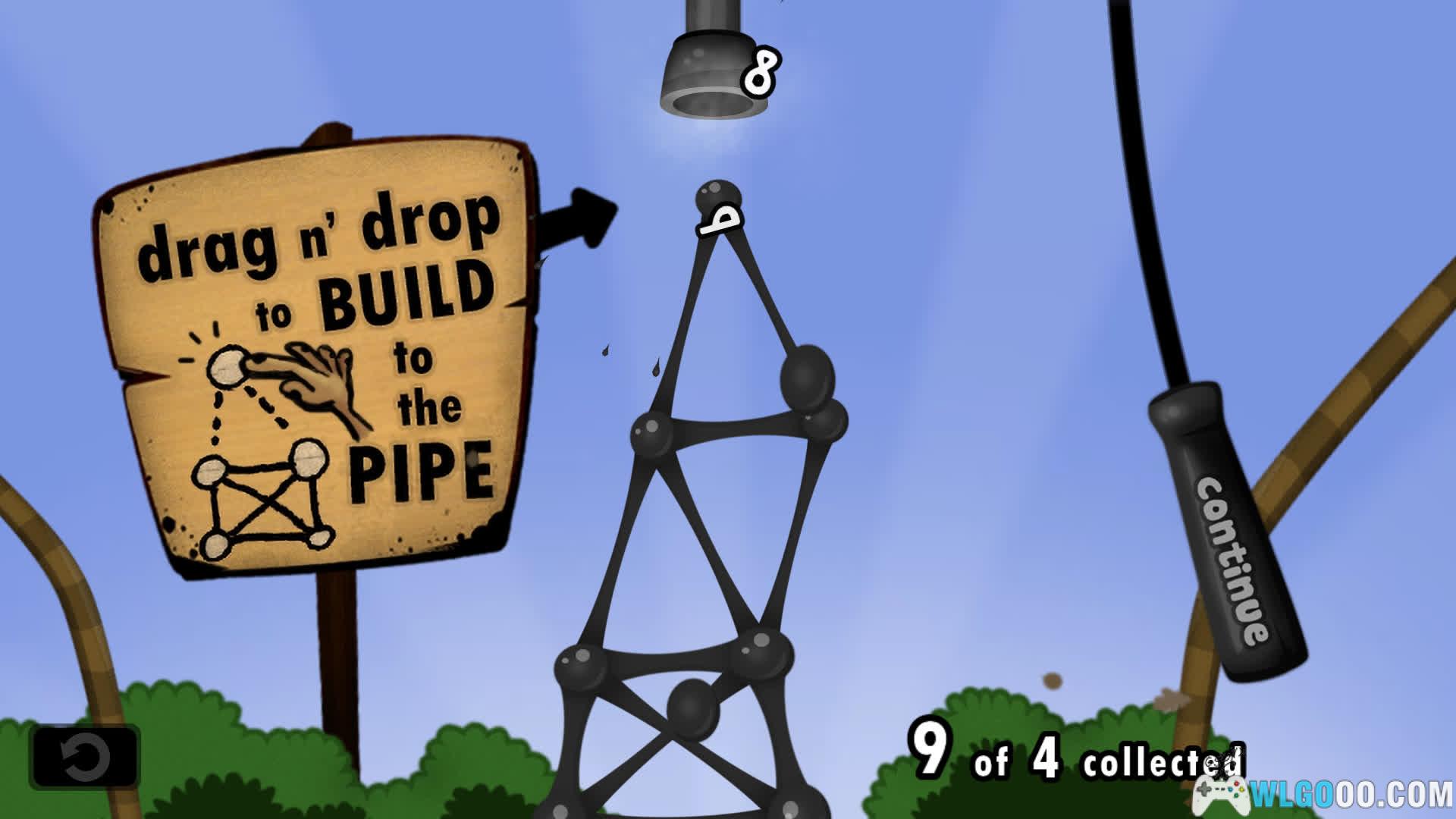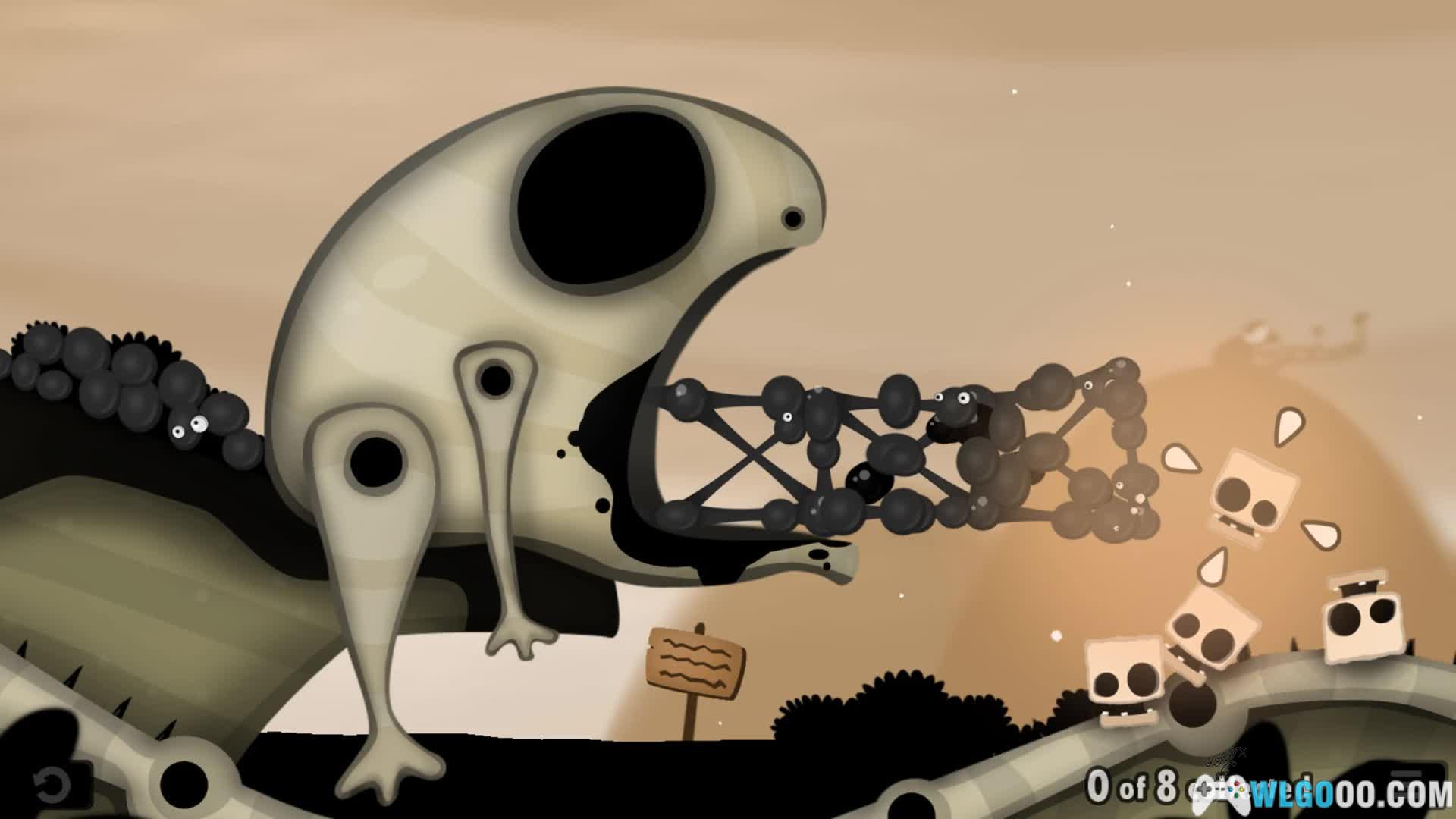 - 结构搭建:玩家利用一颗颗有弹性的「粘粘球」搭建桥梁、塔、通道等结构,让足够数量的球抵达关卡出口的管道。需要考虑重力、支撑点和结构稳定性。玩家需要不断尝试、加固、拆掉重来,实际“摸”出一条可行的通路。失败没有太大惩罚,更多是一种实验乐趣。