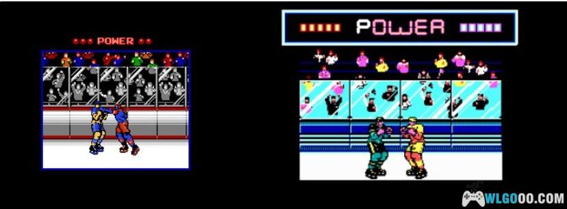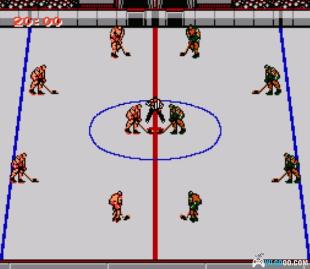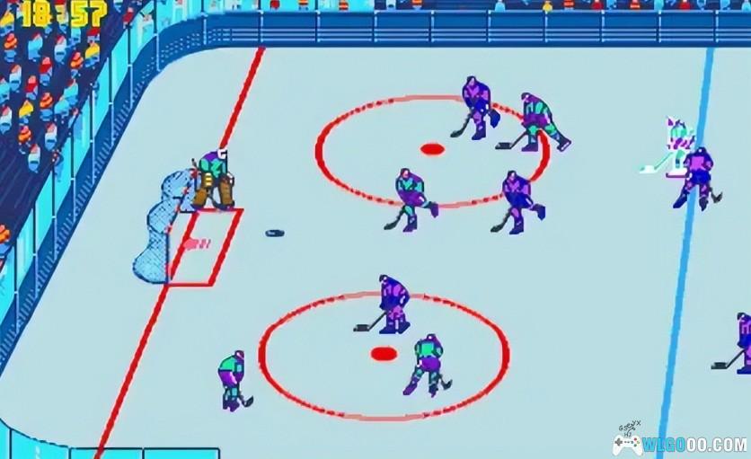 另一款是名为《Blades of steel》钢刀的冰球游戏。这是晚于篮球一年后推出的游戏。风格上跟篮球也有相似。