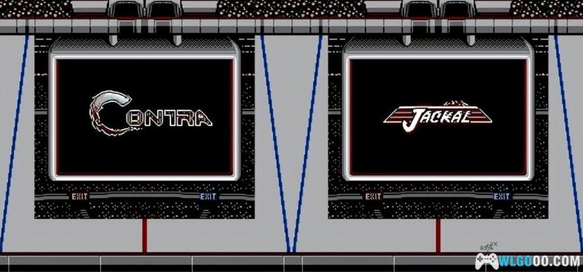 没想到还有广子播放,KONAMI将自己的老四强里的游戏魂斗罗、赤色要塞Logo出现在大屏上,也是给自己的游戏做了广子。