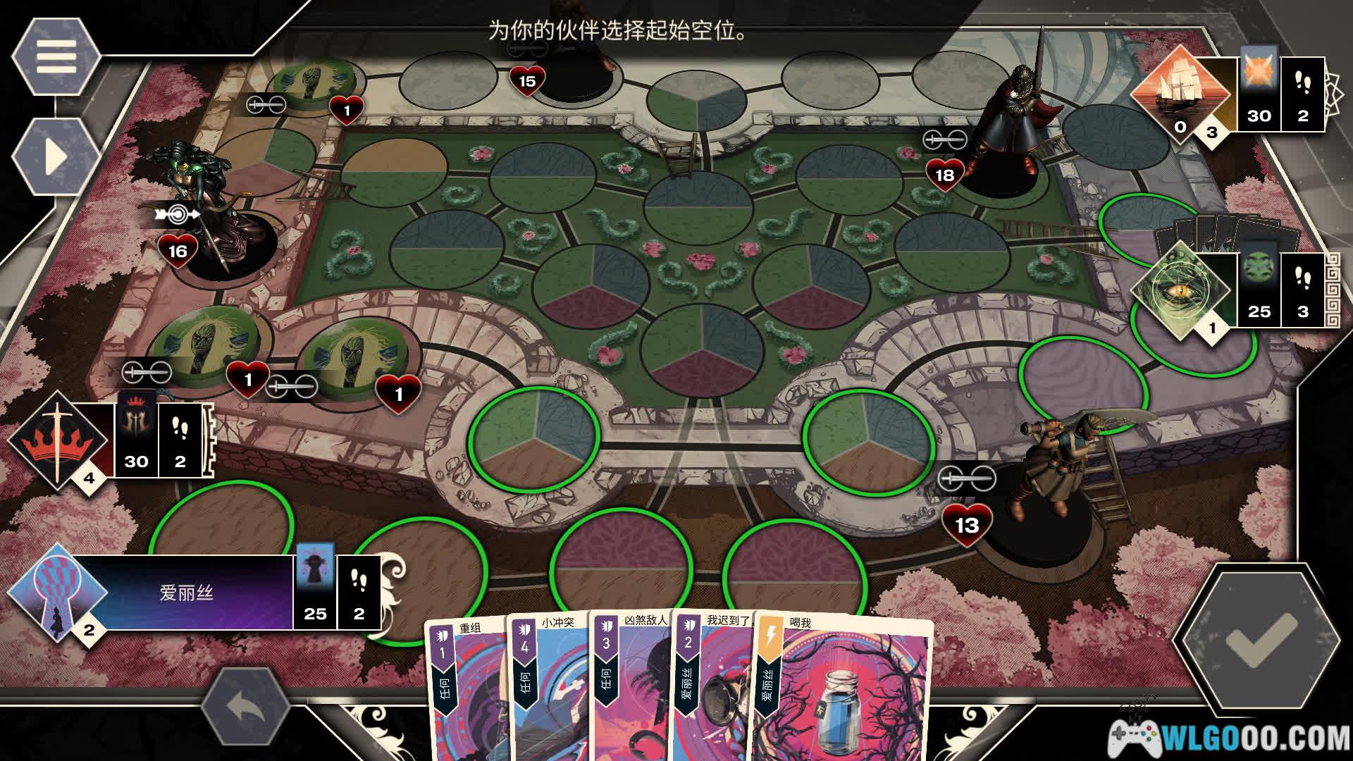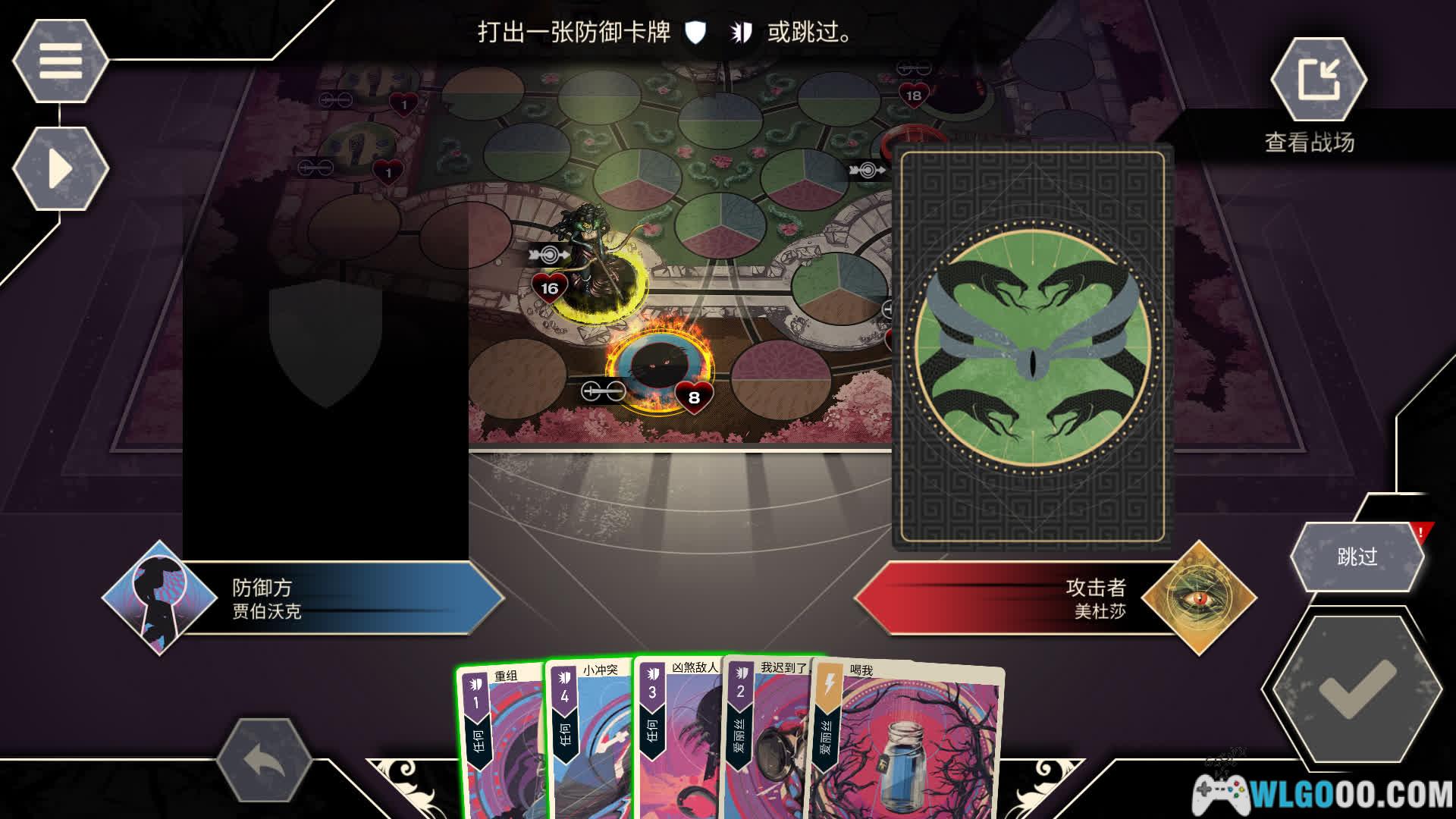- 卡牌对战:你的每回合可以执行两项行动,基础操作只有三种:移动棋子、打出攻击牌或使用带特殊效果的计谋牌。目标很简单:将对手英雄的生命值降为零