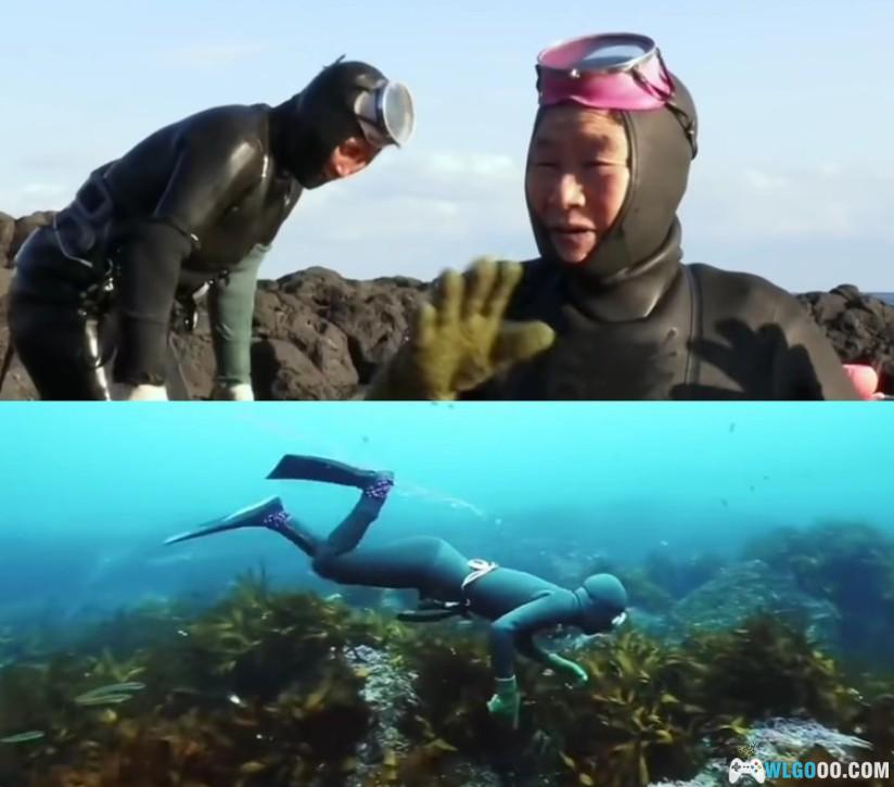 虽然是发达的国家,但潜水仍采用古老的方式:海女身上只有一副防护面具,下水前往肺里吸入尽可能多的空气。