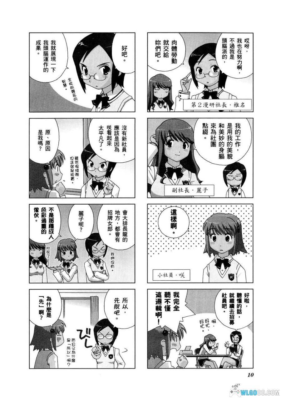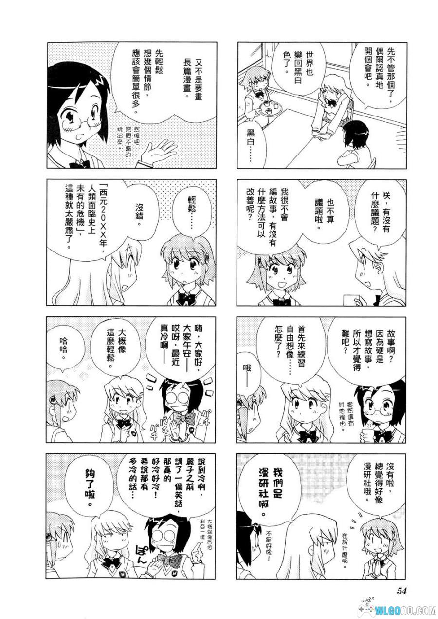 - 漫画主题:虽然是叫漫研,但并非通篇的御宅元素,主要还是以纯女生的校园生活为主。但部分梗还是需要有ACG相关知识才能领会。