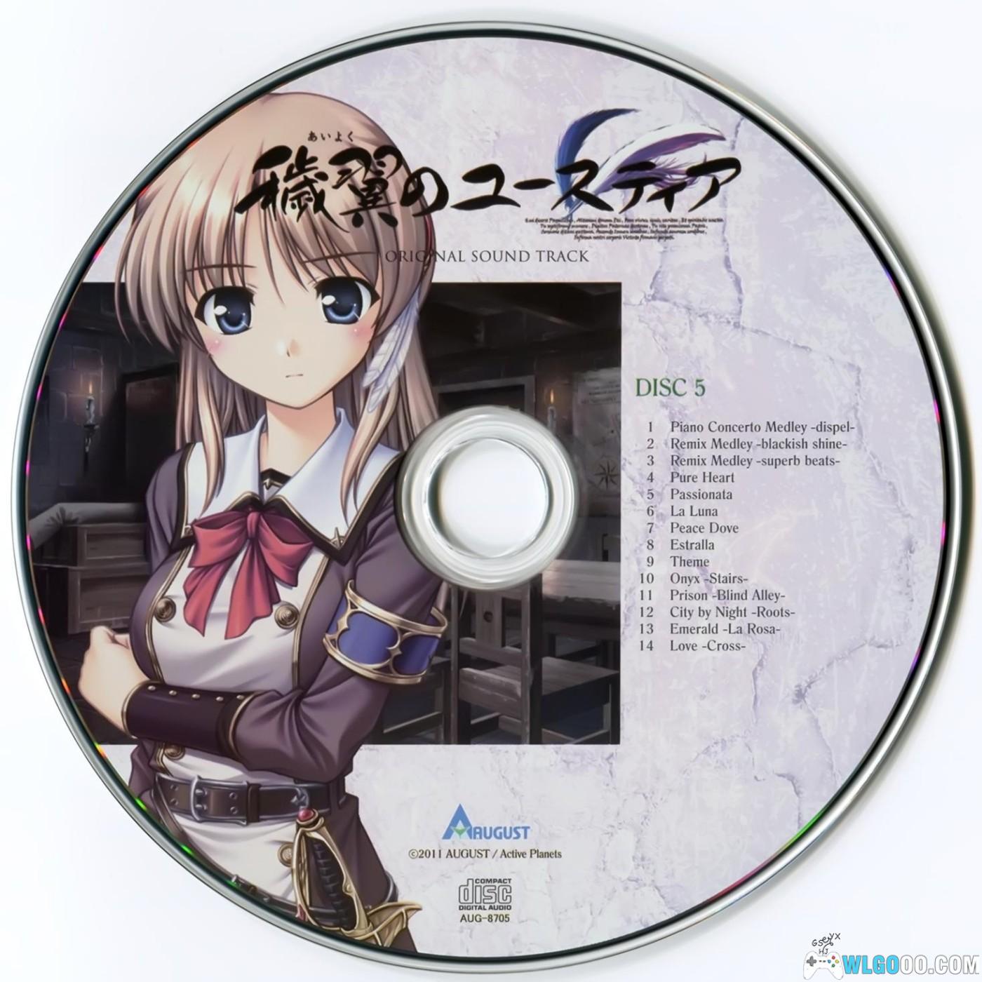 《秽翼的尤斯蒂娅 ORIGINAL SOUND TRACK》是 August 于 2011 年 8 月 26 日发行的游戏原声专辑,以 5 张光盘的丰富体量收录 67 首曲目,其中 Disc1-4 涵盖 53 首游戏 BGM、片头曲、插曲,Disc5 则是 Active Planets 重新编曲的 14 首作品。