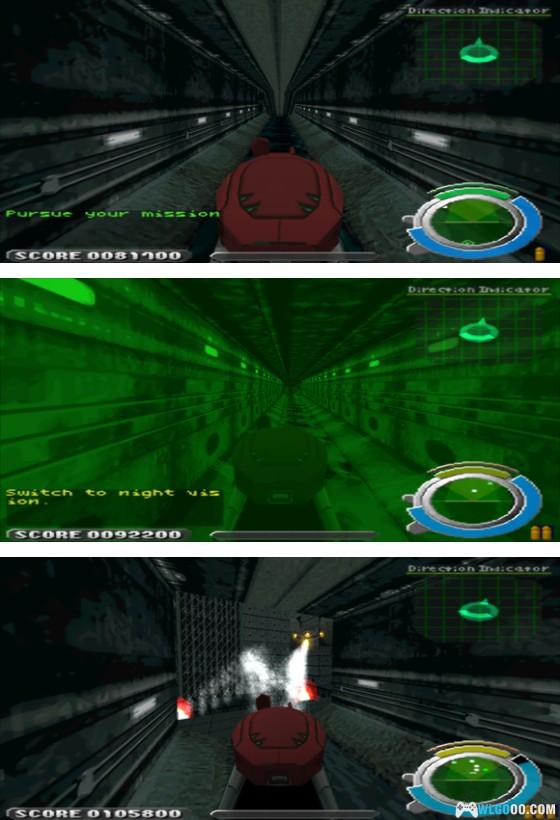 本关好像是在下水道里,看似是个迷宫,但是岔路都很短(一般放补给),加上又有导航因此不可能迷路。要注意地上和墙面的地雷,以及能射导弹的敌人(特别是无人机)。关卡中段会开启夜视仪。最后跳进一个大坑进行boss战。