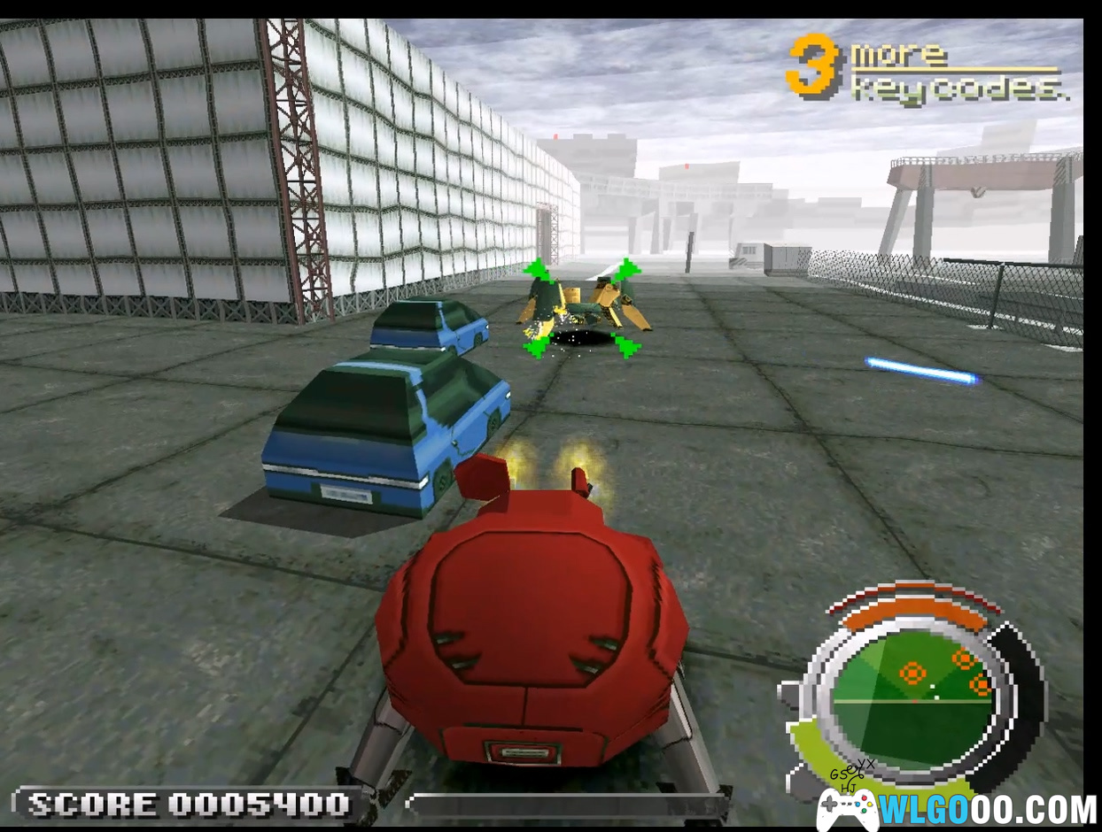 这一关的任务首先是需要打掉四个四足机器人,雷达会显示位置。二十多年前玩的时候,由于不看简报不看雷达,所以就是瞎晃悠不知道打什么,一直卡在第一关。四足机器人配备有激光枪,建议远距离导弹打掉。多在地图上转一转,找一下补给(血和炸弹)。打掉第四个机器人后,进入一个玻璃幕墙的大楼开始boss战,这个大楼也是不能攀爬的。