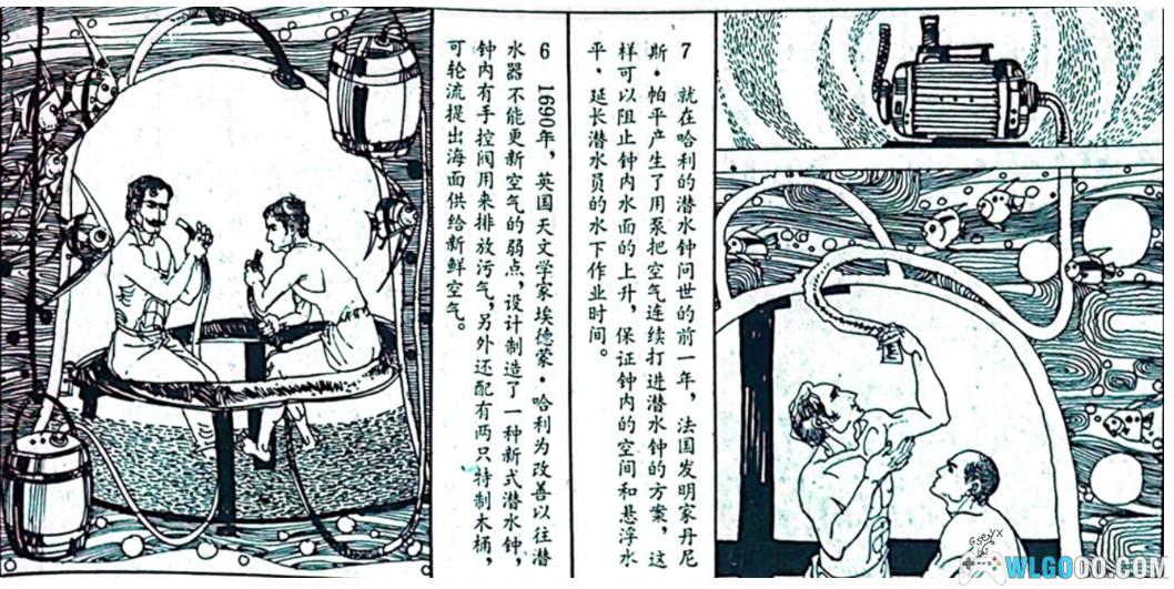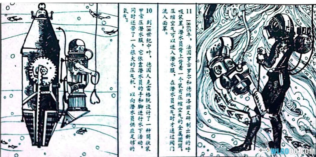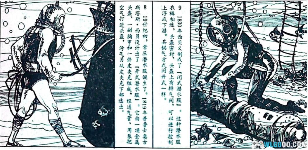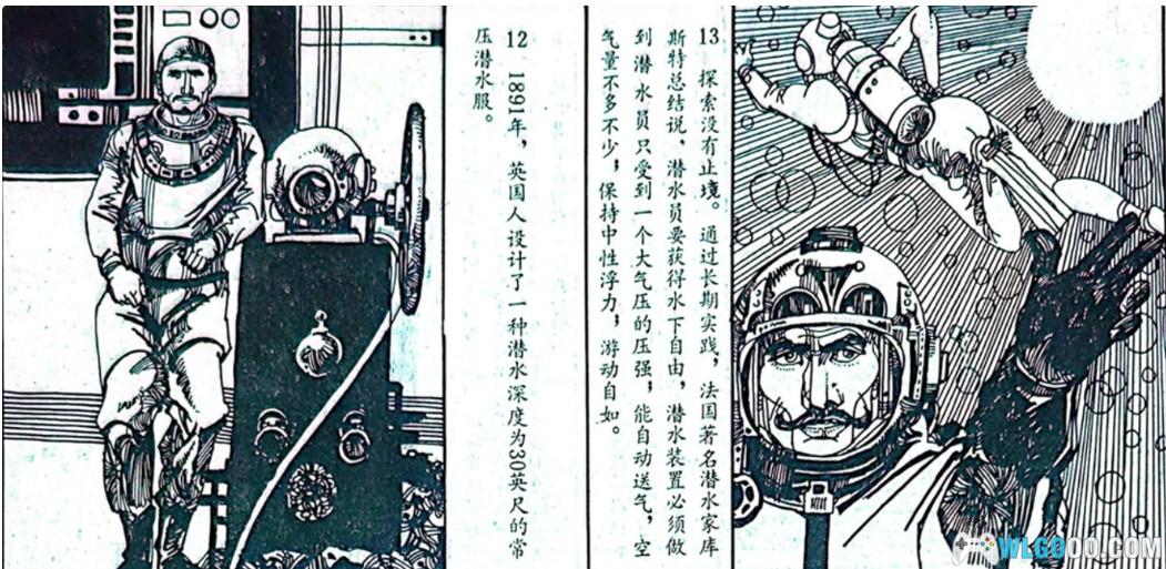 印象里连环画中提到了人是不能呼吸压缩空气的,以及长时间在海里潜水回到陆地上会出现身上蓝色斑纹的症状等等。(实际上可能是潜水症,并非连环画中的描述)