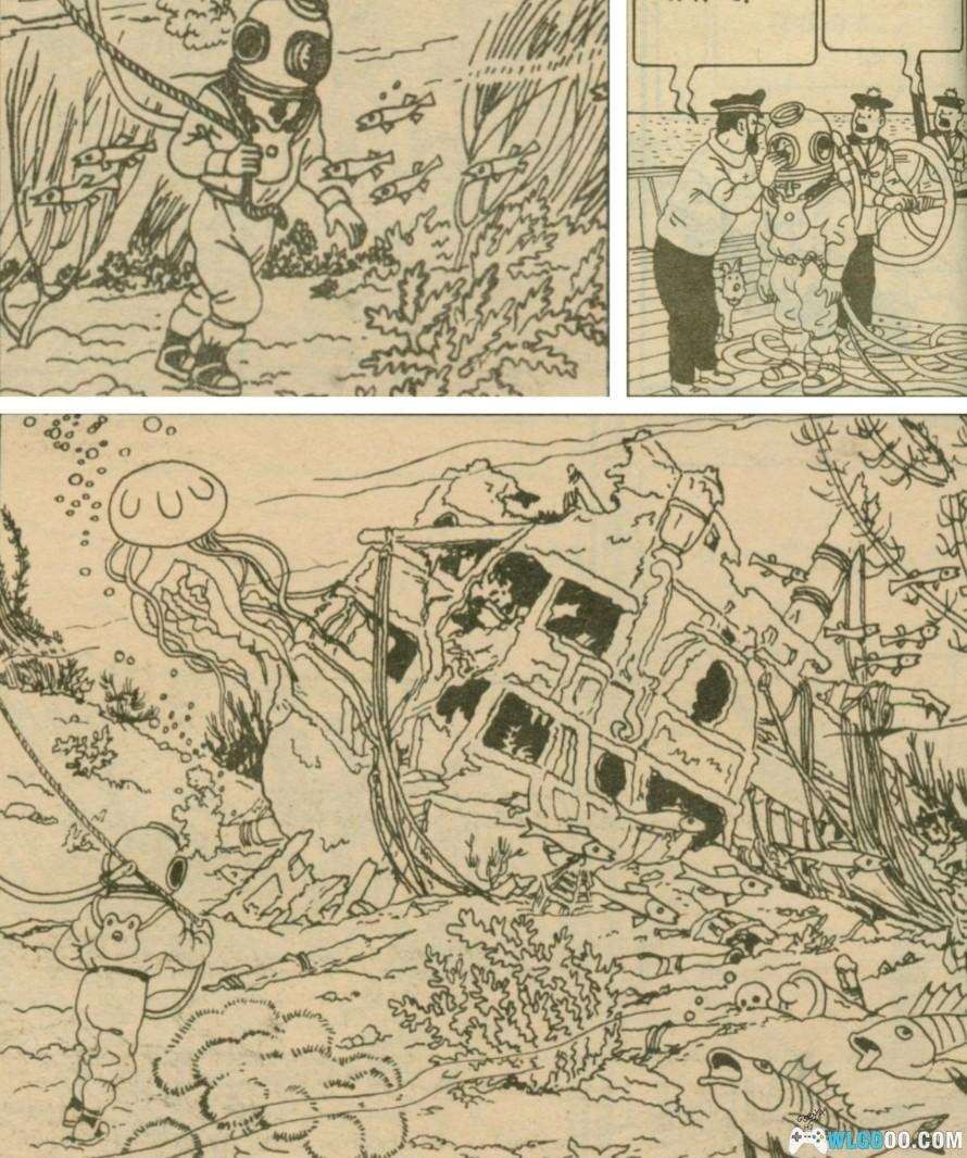 再说个大家熟知的《丁丁历险记》中《海盗失宝》这一集中的潜水服真的是印象深刻。