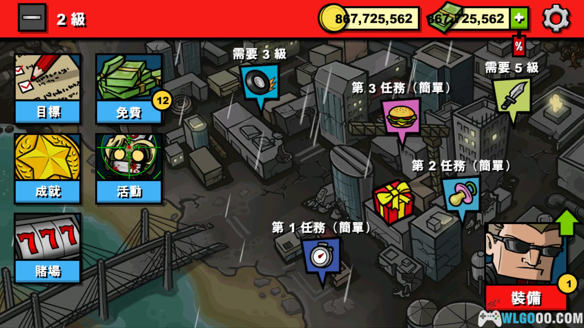 游戏为完整内容解锁版,并且修改为无限金币。