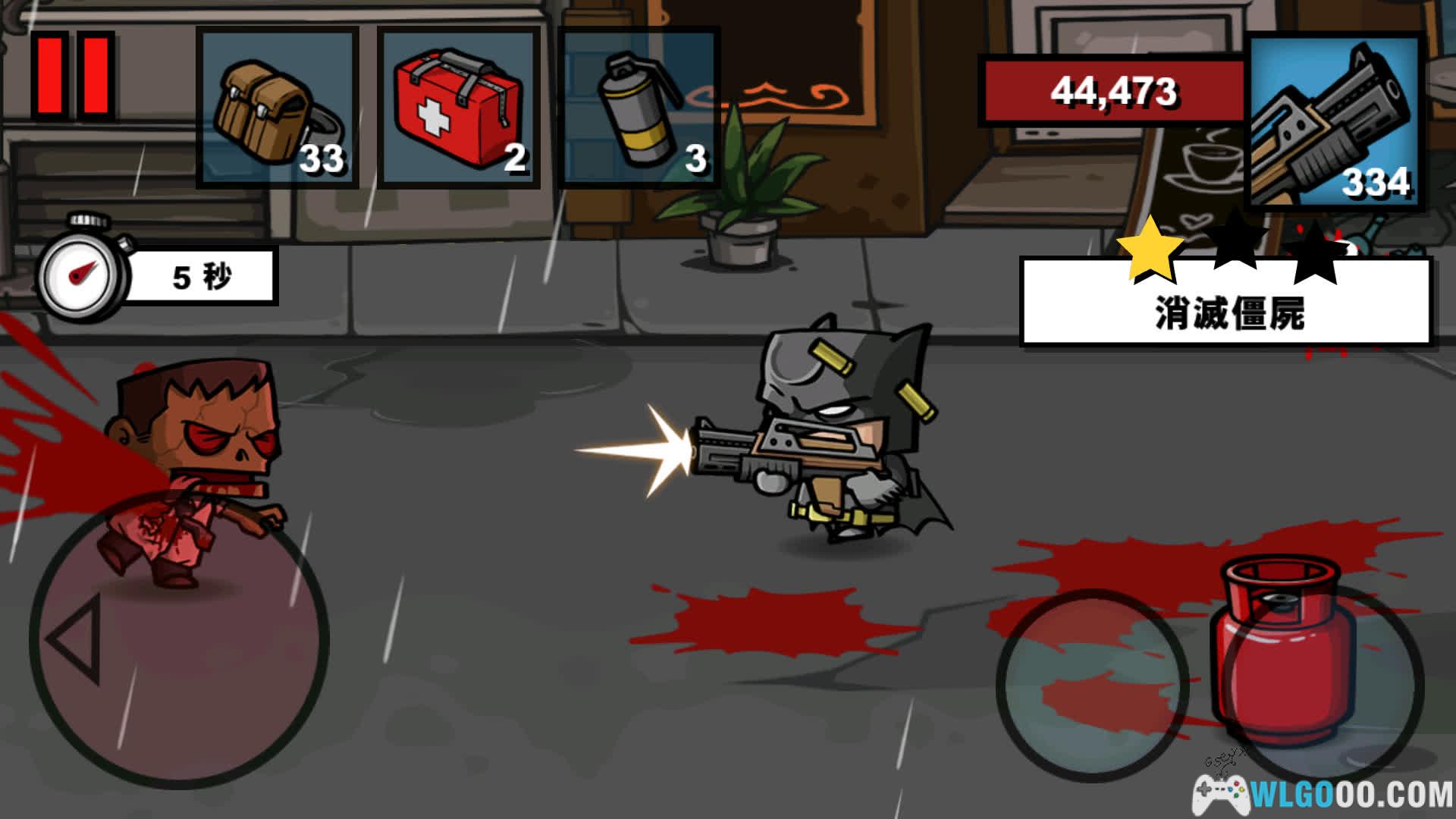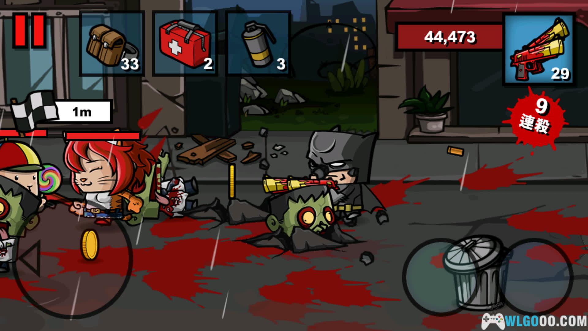 - 横版射击:玩家操控角色在不断前进的横版场景中奔跑,同时对迎面而来的僵尸进行射击,节奏快、操作简单。