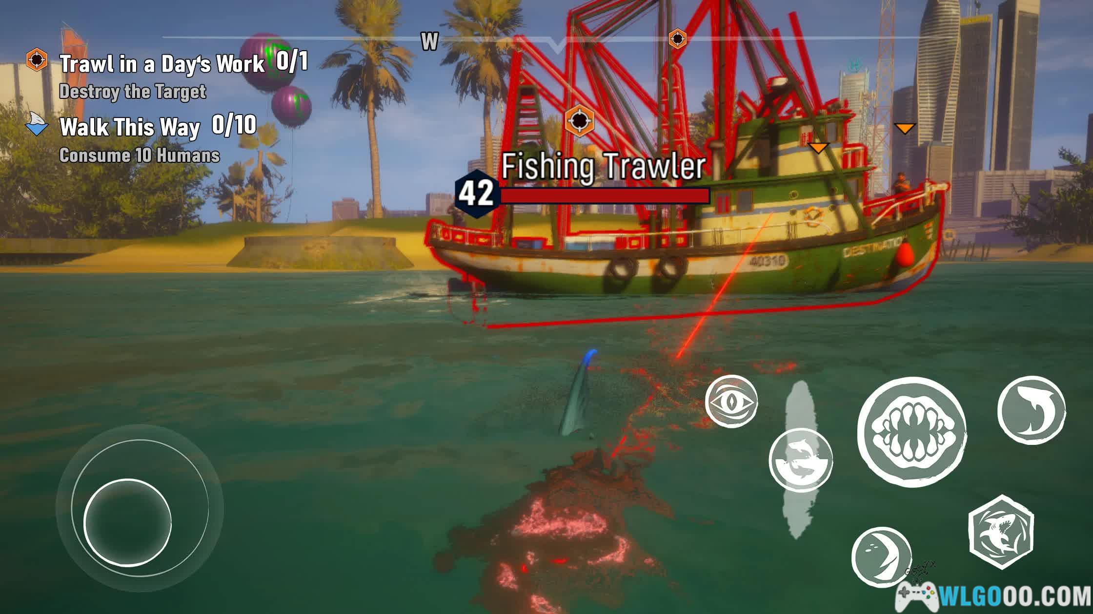 - 猎人对抗:随着鲨鱼威胁等级提升,人类会派出武装猎人、快艇甚至直升机进行围捕。玩家需要灵活运用水面与水下环境,利用地形与技能制造反击机会。