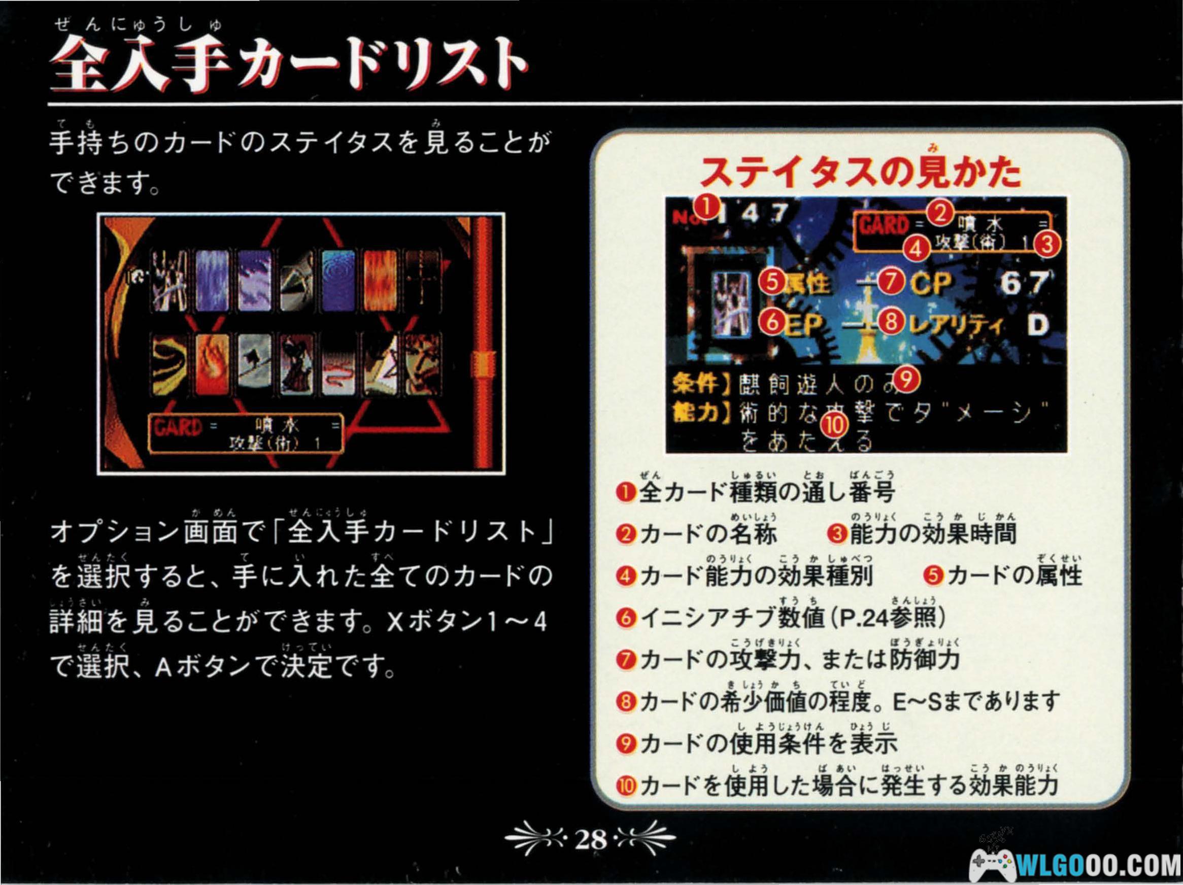 - 卡牌图鉴:可以查看已获得的所有卡牌。使用A键或Y3键选择卡牌图片以查看其详细信息。具体操作请参阅“卡牌信息”。