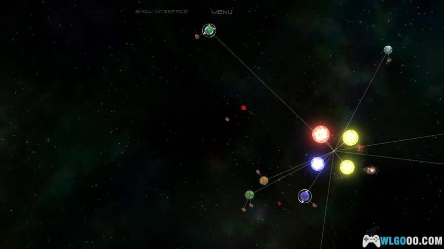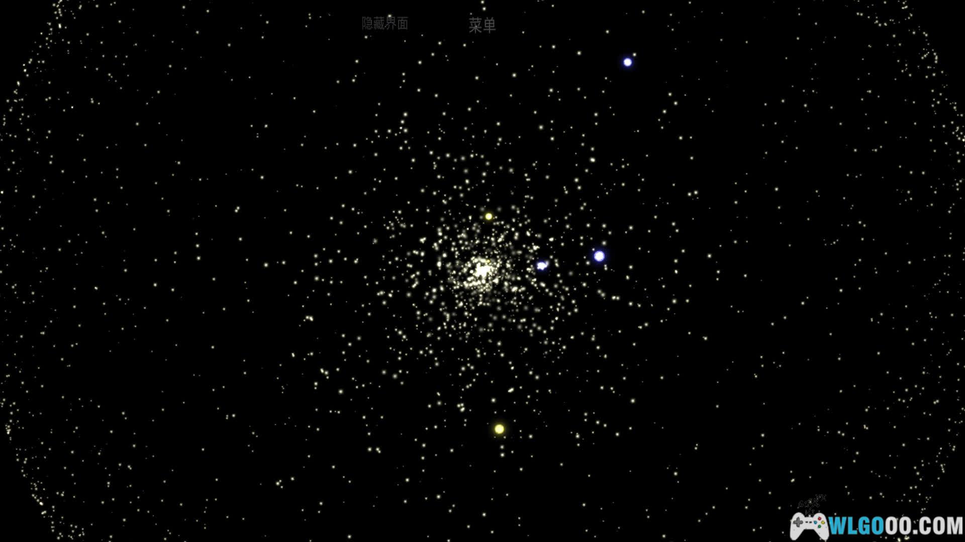 - 极简美术:画面采用抽象化与极简风格呈现宇宙结构,没有复杂贴图,却通过颜色、粒子与运动营造出宏大而冷静的空间感,让注意力集中在系统本身。