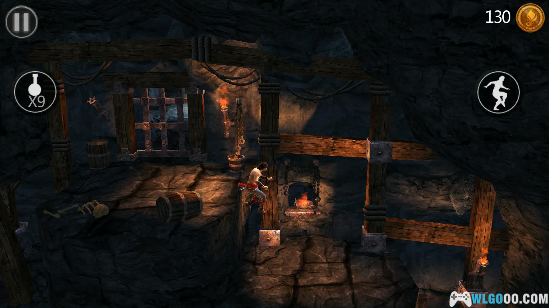 - 横版动作:游戏采用经典横版动作结构,玩家需要操控王子完成跳跃、攀爬、下滑等一系列流畅的特技动作,穿越布满尖刺、陷阱和机关的宫殿。