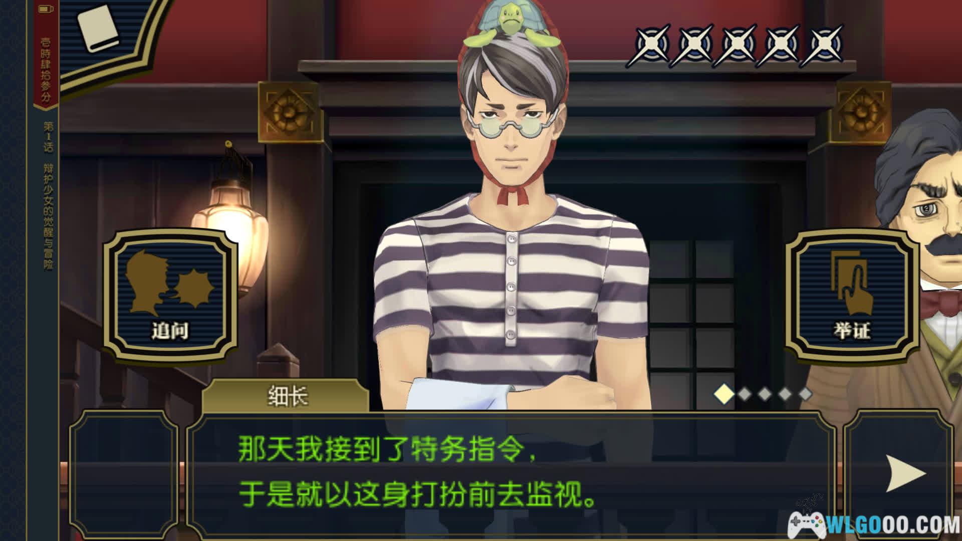 - 侦探部分:玩家需在案件现场仔细探索每个角落,与证人对话并搜集物证,结合环境线索去推理,为后续辩护打下基础。