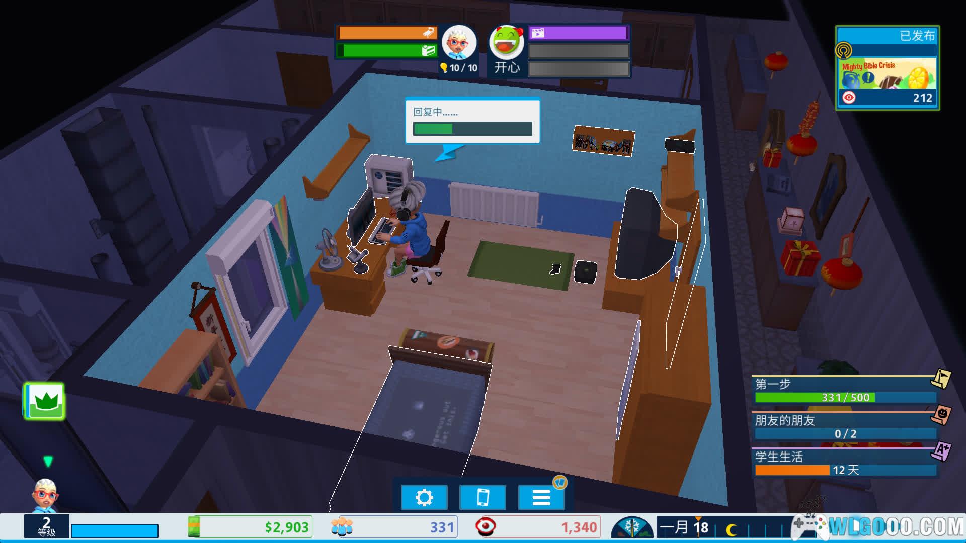 这是一款聚焦内容创作者早期阶段的生活模拟游戏,它重点放在“从零开始”的真实过程之中。玩家最初只是住在卧室里的普通学生,设备简陋、时间有限,一切都需要从最基础的录制与剪辑做起。