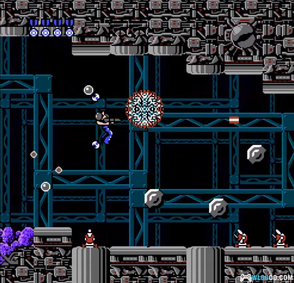 - 流程关卡:虽然只有五关,但每关流程极长且设计独具匠心。尤其是第四关的垂直升降通道,是FC射击游戏史上的经典场景。